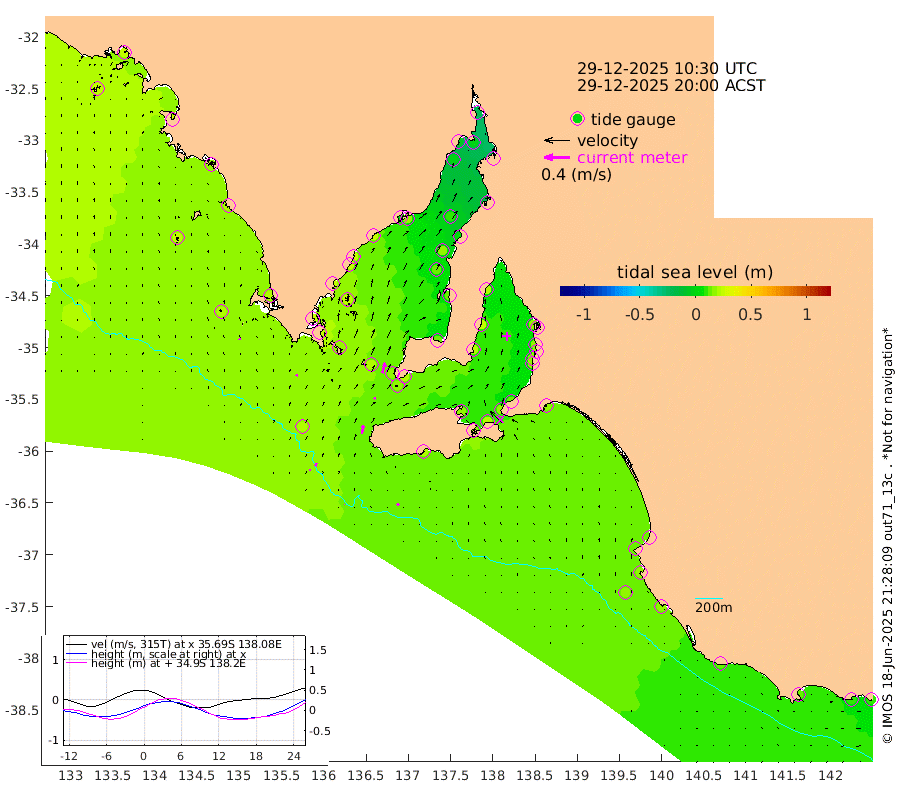 1cm/s 110T +10cm/s rms + 5cm/s 114T. SAM1DS 520m 3cm/s 20T +13cm/s rms + 5cm/s -36T. SAM2CP 100m 4cm/s 15T +21cm/s rms + 18cm/s 142T. SAM3MS 168m 4cm/s 40T +22cm/s rms + 0cm/s -30T. SAM4CY 117m 3cm/s -32T +23cm/s rms + 2cm/s 99T. SAM5CB 94m 3cm/s 22T +8cm/s rms + 3cm/s -172T. SAM6IS 83m 2cm/s 8T +11cm/s rms + 7cm/s 150T. SAM7DS 519m 17cm/s 16T +10cm/s rms + 2cm/s 87T. SAM8SG 47m 13cm/s 12T +20cm/s rms + 12cm/s -168T. NRSKAI 101m 11cm Warrnambool 11cm Port Fairy 13cm Portland 14cm Port Macdonnell 16cm Beachport 16cm Cape Rabelais (off) 16cm Robe 13cm Cape Jaffa 13cm Kingston 18cm Victor Harbor 20cm Vivonne Bay 15cm Kingscote 17cm American River 20cm Penneshaw 16cm Cape Jervis 14cm Second Valley 16cm Port Noarlunga 17cm Port Stanvac 16cm Brighton 17cm Glenelg 17cm Port Adelaide (Outer Harbor) 12cm Angus Inlet (Garden Island) 21cm Ardrossan 24cm Port Vincent 21cm Port Giles 20cm Stenhouse Bay 18cm Althorpe Island 17cm Pondalowie Bay 15cm Point Turton 13cm Port Victoria 11cm Cape Elizabeth 15cm Tiparra Reef Light 7cm Wallaroo 8cm Middle Bank -16cm Port Broughton -13cm Port Pirie -20cm Red Cliff Point (Beacon 5) -2cm Port Bonython -5cm Whyalla -3cm Western Shoal Beacon 2cm Franklin Harbor 17cm Franklin Harbor Entrance Beacon 23cm Arno Bay 25cm Port Neill 23cm Cape Hardy 23cm Tumby Bay 25cm Reevesby Island 26cm Port Lincoln 24cm Taylors Landing 18cm Whalers Bay 20cm Wedge Island Mooring 20cm Shelf Edge Mooring 20cm Coffin Bay Entrance Beacon 19cm Greenly Island 20cm Elliston 23cm Pearson Island 15cm Venus Bay 24cm Blanche Port (Streaky Bay) 25cm Thevenard 23cm St Francis Island
