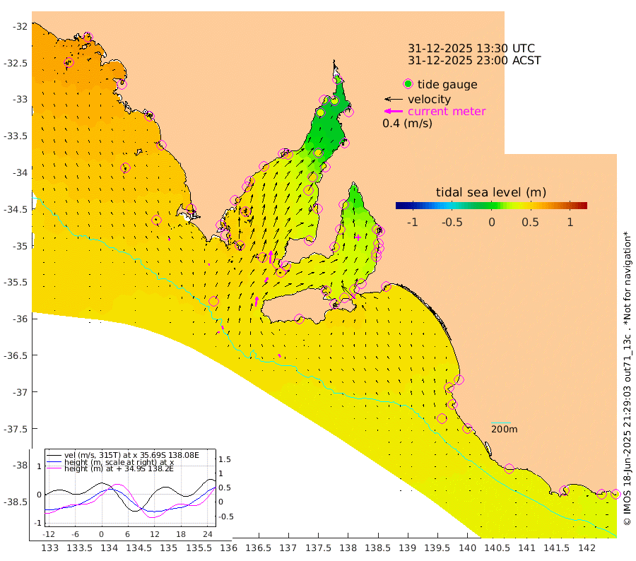 0cm/s -93T +10cm/s rms + 5cm/s 114T. SAM1DS 520m 4cm/s -11T +13cm/s rms + 5cm/s -36T. SAM2CP 100m 7cm/s -11T +21cm/s rms + 18cm/s 142T. SAM3MS 168m 8cm/s -32T +22cm/s rms + 0cm/s -30T. SAM4CY 117m 4cm/s -41T +23cm/s rms + 2cm/s 99T. SAM5CB 94m 12cm/s 36T +8cm/s rms + 3cm/s -172T. SAM6IS 83m 3cm/s -18T +11cm/s rms + 7cm/s 150T. SAM7DS 519m 28cm/s 4T +10cm/s rms + 2cm/s 87T. SAM8SG 47m 21cm/s 10T +20cm/s rms + 12cm/s -168T. NRSKAI 101m 36cm Warrnambool 35cm Port Fairy 39cm Portland 37cm Port Macdonnell 41cm Beachport 42cm Cape Rabelais (off) 41cm Robe 43cm Cape Jaffa 40cm Kingston 47cm Victor Harbor 44cm Vivonne Bay 42cm Kingscote 39cm American River 43cm Penneshaw 37cm Cape Jervis 33cm Second Valley 33cm Port Noarlunga 33cm Port Stanvac 34cm Brighton 33cm Glenelg 31cm Port Adelaide (Outer Harbor) 21cm Angus Inlet (Garden Island) 32cm Ardrossan 44cm Port Vincent 39cm Port Giles 44cm Stenhouse Bay 47cm Althorpe Island 41cm Pondalowie Bay 45cm Point Turton 42cm Port Victoria 42cm Cape Elizabeth 46cm Tiparra Reef Light 40cm Wallaroo 42cm Middle Bank 4cm Port Broughton 21cm Port Pirie 13cm Red Cliff Point (Beacon 5) 26cm Port Bonython 28cm Whyalla 32cm Western Shoal Beacon 32cm Franklin Harbor 53cm Franklin Harbor Entrance Beacon 57cm Arno Bay 61cm Port Neill 60cm Cape Hardy 61cm Tumby Bay 61cm Reevesby Island 59cm Port Lincoln 56cm Taylors Landing 48cm Whalers Bay 50cm Wedge Island Mooring 47cm Shelf Edge Mooring 53cm Coffin Bay Entrance Beacon 47cm Greenly Island 54cm Elliston 52cm Pearson Island 43cm Venus Bay 67cm Blanche Port (Streaky Bay) 66cm Thevenard 58cm St Francis Island
