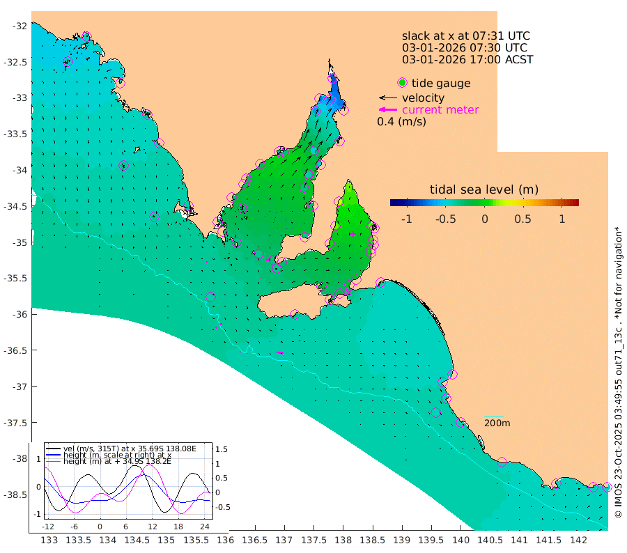 2cm/s 111T +10cm/s rms + 5cm/s 114T. SAM1DS 520m 2cm/s 83T +13cm/s rms + 5cm/s -36T. SAM2CP 100m 6cm/s 50T +21cm/s rms + 18cm/s 142T. SAM3MS 168m 15cm/s 98T +22cm/s rms + 0cm/s -30T. SAM4CY 117m 3cm/s 161T +23cm/s rms + 2cm/s 99T. SAM5CB 94m 0cm/s -41T +8cm/s rms + 3cm/s -172T. SAM6IS 83m 3cm/s 48T +11cm/s rms + 7cm/s 150T. SAM7DS 519m 7cm/s 83T +10cm/s rms + 2cm/s 87T. SAM8SG 47m 1cm/s 138T +20cm/s rms + 12cm/s -168T. NRSKAI 101m -46cm Warrnambool -42cm Port Fairy -43cm Portland -42cm Port Macdonnell -40cm Beachport -42cm Cape Rabelais (off) -42cm Robe -47cm Cape Jaffa -43cm Kingston -40cm Victor Harbor -33cm Vivonne Bay -15cm Kingscote -18cm American River -17cm Penneshaw -14cm Cape Jervis -9cm Second Valley 4cm Port Noarlunga 6cm Port Stanvac 6cm Brighton 10cm Glenelg 14cm Port Adelaide (Outer Harbor) 9cm Angus Inlet (Garden Island) 28cm Ardrossan 14cm Port Vincent 7cm Port Giles -28cm Stenhouse Bay -35cm Althorpe Island -32cm Pondalowie Bay -34cm Point Turton -29cm Port Victoria -32cm Cape Elizabeth -38cm Tiparra Reef Light -49cm Wallaroo -46cm Middle Bank -72cm Port Broughton -90cm Port Pirie -81cm Red Cliff Point (Beacon 5) -71cm Port Bonython -73cm Whyalla -67cm Western Shoal Beacon -36cm Franklin Harbor -27cm Franklin Harbor Entrance Beacon -24cm Arno Bay -25cm Port Neill -27cm Cape Hardy -28cm Tumby Bay -28cm Reevesby Island -29cm Port Lincoln -32cm Taylors Landing -31cm Whalers Bay -34cm Wedge Island Mooring -38cm Shelf Edge Mooring -40cm Coffin Bay Entrance Beacon -35cm Greenly Island -41cm Elliston -37cm Pearson Island -36cm Venus Bay -48cm Blanche Port (Streaky Bay) -44cm Thevenard -45cm St Francis Island