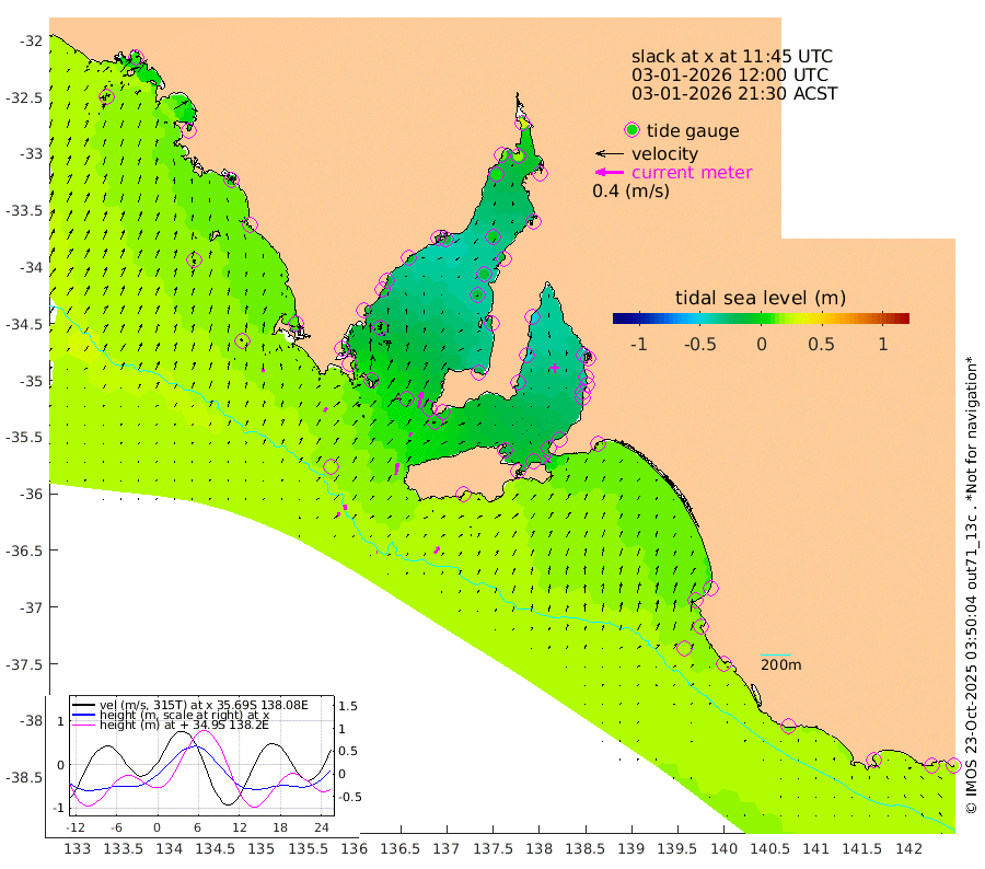 1cm/s 91T +10cm/s rms + 5cm/s 114T. SAM1DS 520m 6cm/s 30T +13cm/s rms + 5cm/s -36T. SAM2CP 100m 8cm/s -4T +21cm/s rms + 18cm/s 142T. SAM3MS 168m 11cm/s 36T +22cm/s rms + 0cm/s -30T. SAM4CY 117m 5cm/s 10T +23cm/s rms + 2cm/s 99T. SAM5CB 94m 6cm/s 14T +8cm/s rms + 3cm/s -172T. SAM6IS 83m 4cm/s -19T +11cm/s rms + 7cm/s 150T. SAM7DS 519m 24cm/s 12T +10cm/s rms + 2cm/s 87T. SAM8SG 47m 16cm/s 8T +20cm/s rms + 12cm/s -168T. NRSKAI 101m 20cm Warrnambool 19cm Port Fairy 21cm Portland 13cm Port Macdonnell 22cm Beachport 20cm Cape Rabelais (off) 17cm Robe 14cm Cape Jaffa 14cm Kingston 18cm Victor Harbor 26cm Vivonne Bay -15cm Kingscote -12cm American River -6cm Penneshaw -9cm Cape Jervis -17cm Second Valley -31cm Port Noarlunga -32cm Port Stanvac -32cm Brighton -37cm Glenelg -38cm Port Adelaide (Outer Harbor) -29cm Angus Inlet (Garden Island) -50cm Ardrossan -48cm Port Vincent -34cm Port Giles -1cm Stenhouse Bay 0cm Althorpe Island -1cm Pondalowie Bay -17cm Point Turton -19cm Port Victoria -16cm Cape Elizabeth -14cm Tiparra Reef Light -11cm Wallaroo -6cm Middle Bank -30cm Port Broughton 19cm Port Pirie 29cm Red Cliff Point (Beacon 5) 18cm Port Bonython 13cm Whyalla 7cm Western Shoal Beacon -21cm Franklin Harbor -11cm Franklin Harbor Entrance Beacon -10cm Arno Bay -13cm Port Neill -7cm Cape Hardy -4cm Tumby Bay -2cm Reevesby Island 2cm Port Lincoln 11cm Taylors Landing -10cm Whalers Bay 6cm Wedge Island Mooring 21cm Shelf Edge Mooring 14cm Coffin Bay Entrance Beacon 21cm Greenly Island 14cm Elliston 17cm Pearson Island 1cm Venus Bay 6cm Blanche Port (Streaky Bay) 10cm Thevenard 17cm St Francis Island