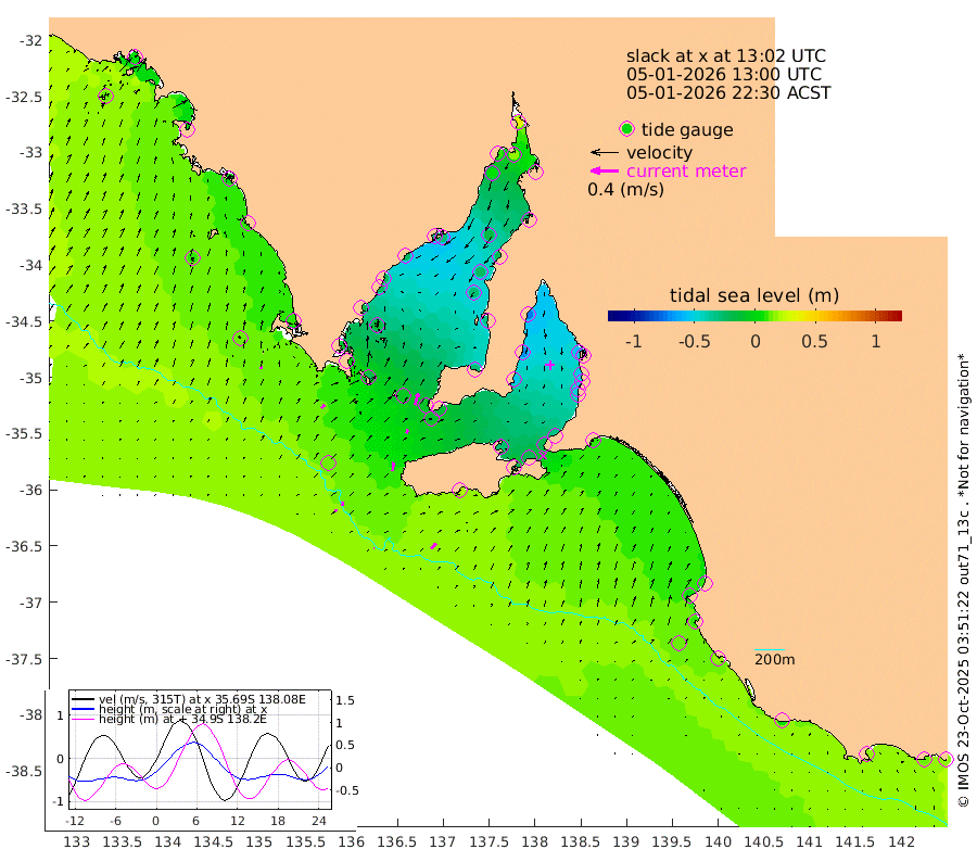 1cm/s 109T +10cm/s rms + 5cm/s 114T. SAM1DS 520m 6cm/s 36T +13cm/s rms + 5cm/s -36T. SAM2CP 100m 7cm/s 6T +21cm/s rms + 18cm/s 142T. SAM3MS 168m 10cm/s 42T +22cm/s rms + 0cm/s -30T. SAM4CY 117m 5cm/s 16T +23cm/s rms + 2cm/s 99T. SAM5CB 94m 5cm/s 19T +8cm/s rms + 3cm/s -172T. SAM6IS 83m 3cm/s -15T +11cm/s rms + 7cm/s 150T. SAM7DS 519m 17cm/s 15T +10cm/s rms + 2cm/s 87T. SAM8SG 47m 12cm/s 7T +20cm/s rms + 12cm/s -168T. NRSKAI 101m 16cm Warrnambool 14cm Port Fairy 15cm Portland 5cm Port Macdonnell 15cm Beachport 14cm Cape Rabelais (off) 11cm Robe 7cm Cape Jaffa 9cm Kingston 11cm Victor Harbor 19cm Vivonne Bay -29cm Kingscote -24cm American River -20cm Penneshaw -20cm Cape Jervis -32cm Second Valley -48cm Port Noarlunga -50cm Port Stanvac -50cm Brighton -55cm Glenelg -58cm Port Adelaide (Outer Harbor) -45cm Angus Inlet (Garden Island) -74cm Ardrossan -69cm Port Vincent -53cm Port Giles -12cm Stenhouse Bay -8cm Althorpe Island -10cm Pondalowie Bay -28cm Point Turton -32cm Port Victoria -29cm Cape Elizabeth -24cm Tiparra Reef Light -20cm Wallaroo -17cm Middle Bank -24cm Port Broughton 22cm Port Pirie 37cm Red Cliff Point (Beacon 5) 17cm Port Bonython 11cm Whyalla 5cm Western Shoal Beacon -32cm Franklin Harbor -27cm Franklin Harbor Entrance Beacon -25cm Arno Bay -26cm Port Neill -21cm Cape Hardy -17cm Tumby Bay -15cm Reevesby Island -11cm Port Lincoln 1cm Taylors Landing -21cm Whalers Bay -4cm Wedge Island Mooring 14cm Shelf Edge Mooring 8cm Coffin Bay Entrance Beacon 14cm Greenly Island 8cm Elliston 10cm Pearson Island -3cm Venus Bay 0cm Blanche Port (Streaky Bay) 4cm Thevenard 14cm St Francis Island