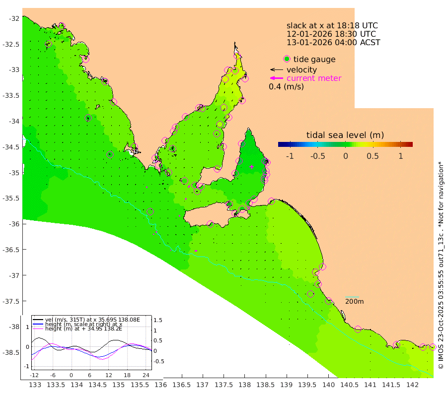 1cm/s -70T +10cm/s rms + 5cm/s 114T. SAM1DS 520m 3cm/s -140T +13cm/s rms + 5cm/s -36T. SAM2CP 100m 4cm/s -149T +21cm/s rms + 18cm/s 142T. SAM3MS 168m 8cm/s -86T +22cm/s rms + 0cm/s -30T. SAM4CY 117m 1cm/s 171T +23cm/s rms + 2cm/s 99T. SAM5CB 94m 5cm/s -158T +8cm/s rms + 3cm/s -172T. SAM6IS 83m 2cm/s -157T +11cm/s rms + 7cm/s 150T. SAM7DS 519m 8cm/s -147T +10cm/s rms + 2cm/s 87T. SAM8SG 47m 4cm/s -163T +20cm/s rms + 12cm/s -168T. NRSKAI 101m 22cm Warrnambool 19cm Port Fairy 18cm Portland 20cm Port Macdonnell 12cm Beachport 14cm Cape Rabelais (off) 15cm Robe 19cm Cape Jaffa 18cm Kingston 13cm Victor Harbor 8cm Vivonne Bay -1cm Kingscote 1cm American River 3cm Penneshaw 2cm Cape Jervis 1cm Second Valley -7cm Port Noarlunga -8cm Port Stanvac -9cm Brighton -8cm Glenelg -12cm Port Adelaide (Outer Harbor) -12cm Angus Inlet (Garden Island) -18cm Ardrossan -22cm Port Vincent -7cm Port Giles 9cm Stenhouse Bay 15cm Althorpe Island 10cm Pondalowie Bay 17cm Point Turton 14cm Port Victoria 13cm Cape Elizabeth 20cm Tiparra Reef Light 23cm Wallaroo 21cm Middle Bank 37cm Port Broughton 34cm Port Pirie 35cm Red Cliff Point (Beacon 5) 19cm Port Bonython 27cm Whyalla 30cm Western Shoal Beacon 21cm Franklin Harbor 16cm Franklin Harbor Entrance Beacon 11cm Arno Bay 13cm Port Neill 12cm Cape Hardy 12cm Tumby Bay 9cm Reevesby Island 10cm Port Lincoln 8cm Taylors Landing 14cm Whalers Bay 11cm Wedge Island Mooring 8cm Shelf Edge Mooring 12cm Coffin Bay Entrance Beacon 7cm Greenly Island 13cm Elliston 6cm Pearson Island 13cm Venus Bay 15cm Blanche Port (Streaky Bay) 14cm Thevenard 15cm St Francis Island