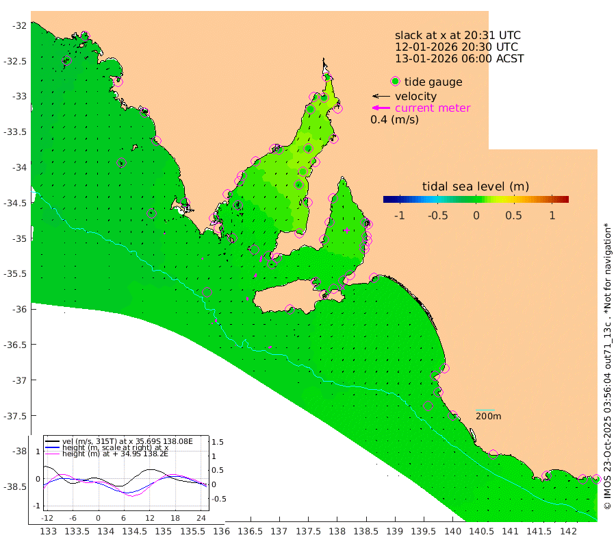 1cm/s -76T +10cm/s rms + 5cm/s 114T. SAM1DS 520m 3cm/s -155T +13cm/s rms + 5cm/s -36T. SAM2CP 100m 5cm/s -178T +21cm/s rms + 18cm/s 142T. SAM3MS 168m 7cm/s -112T +22cm/s rms + 0cm/s -30T. SAM4CY 117m 2cm/s 173T +23cm/s rms + 2cm/s 99T. SAM5CB 94m 7cm/s -156T +8cm/s rms + 3cm/s -172T. SAM6IS 83m 3cm/s 178T +11cm/s rms + 7cm/s 150T. SAM7DS 519m 14cm/s -167T +10cm/s rms + 2cm/s 87T. SAM8SG 47m 7cm/s -170T +20cm/s rms + 12cm/s -168T. NRSKAI 101m 6cm Warrnambool 4cm Port Fairy 3cm Portland 8cm Port Macdonnell -1cm Beachport 0cm Cape Rabelais (off) 1cm Robe 4cm Cape Jaffa 4cm Kingston -1cm Victor Harbor -5cm Vivonne Bay -2cm Kingscote 1cm American River 0cm Penneshaw -1cm Cape Jervis 3cm Second Valley -1cm Port Noarlunga -1cm Port Stanvac -1cm Brighton 0cm Glenelg -2cm Port Adelaide (Outer Harbor) -6cm Angus Inlet (Garden Island) -3cm Ardrossan -6cm Port Vincent 2cm Port Giles 3cm Stenhouse Bay 6cm Althorpe Island 2cm Pondalowie Bay 9cm Point Turton 7cm Port Victoria 7cm Cape Elizabeth 8cm Tiparra Reef Light 8cm Wallaroo 5cm Middle Bank 28cm Port Broughton 2cm Port Pirie 3cm Red Cliff Point (Beacon 5) -7cm Port Bonython 1cm Whyalla 4cm Western Shoal Beacon 11cm Franklin Harbor 5cm Franklin Harbor Entrance Beacon 2cm Arno Bay 5cm Port Neill 2cm Cape Hardy 2cm Tumby Bay -4cm Reevesby Island -1cm Port Lincoln -4cm Taylors Landing 5cm Whalers Bay -1cm Wedge Island Mooring -5cm Shelf Edge Mooring -4cm Coffin Bay Entrance Beacon -7cm Greenly Island -2cm Elliston -6cm Pearson Island 2cm Venus Bay -2cm Blanche Port (Streaky Bay) -5cm Thevenard 1cm St Francis Island