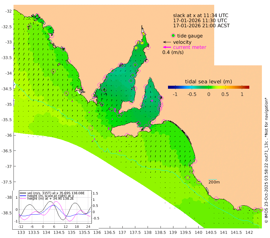 1cm/s 91T +10cm/s rms + 5cm/s 114T. SAM1DS 520m 5cm/s 24T +13cm/s rms + 5cm/s -36T. SAM2CP 100m 6cm/s -2T +21cm/s rms + 18cm/s 142T. SAM3MS 168m 9cm/s 34T +22cm/s rms + 0cm/s -30T. SAM4CY 117m 4cm/s 7T +23cm/s rms + 2cm/s 99T. SAM5CB 94m 4cm/s -4T +8cm/s rms + 3cm/s -172T. SAM6IS 83m 4cm/s -17T +11cm/s rms + 7cm/s 150T. SAM7DS 519m 19cm/s 8T +10cm/s rms + 2cm/s 87T. SAM8SG 47m 13cm/s 7T +20cm/s rms + 12cm/s -168T. NRSKAI 101m 16cm Warrnambool 13cm Port Fairy 16cm Portland 8cm Port Macdonnell 18cm Beachport 17cm Cape Rabelais (off) 14cm Robe 9cm Cape Jaffa 10cm Kingston 15cm Victor Harbor 22cm Vivonne Bay -11cm Kingscote -6cm American River -3cm Penneshaw -3cm Cape Jervis -10cm Second Valley -21cm Port Noarlunga -21cm Port Stanvac -20cm Brighton -23cm Glenelg -25cm Port Adelaide (Outer Harbor) -12cm Angus Inlet (Garden Island) -33cm Ardrossan -38cm Port Vincent -24cm Port Giles 0cm Stenhouse Bay 3cm Althorpe Island 0cm Pondalowie Bay -14cm Point Turton -16cm Port Victoria -16cm Cape Elizabeth -7cm Tiparra Reef Light -4cm Wallaroo 0cm Middle Bank -16cm Port Broughton 31cm Port Pirie 40cm Red Cliff Point (Beacon 5) 32cm Port Bonython 25cm Whyalla 19cm Western Shoal Beacon -20cm Franklin Harbor -10cm Franklin Harbor Entrance Beacon -7cm Arno Bay -8cm Port Neill -5cm Cape Hardy -3cm Tumby Bay -3cm Reevesby Island 1cm Port Lincoln 9cm Taylors Landing -7cm Whalers Bay 5cm Wedge Island Mooring 18cm Shelf Edge Mooring 11cm Coffin Bay Entrance Beacon 16cm Greenly Island 12cm Elliston 15cm Pearson Island 1cm Venus Bay 3cm Blanche Port (Streaky Bay) 7cm Thevenard 14cm St Francis Island