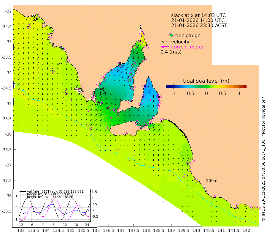 0cm/s -47T +10cm/s rms + 5cm/s 114T. SAM1DS 520m 6cm/s 40T +13cm/s rms + 5cm/s -36T. SAM2CP 100m 4cm/s 1T +21cm/s rms + 18cm/s 142T. SAM3MS 168m 8cm/s 19T +22cm/s rms + 0cm/s -30T. SAM4CY 117m 6cm/s 14T +23cm/s rms + 2cm/s 99T. SAM5CB 94m 6cm/s 29T +8cm/s rms + 3cm/s -172T. SAM6IS 83m 2cm/s -35T +11cm/s rms + 7cm/s 150T. SAM7DS 519m 13cm/s 16T +10cm/s rms + 2cm/s 87T. SAM8SG 47m 9cm/s 6T +20cm/s rms + 12cm/s -168T. NRSKAI 101m 22cm Warrnambool 20cm Port Fairy 22cm Portland 12cm Port Macdonnell 21cm Beachport 21cm Cape Rabelais (off) 19cm Robe 19cm Cape Jaffa 17cm Kingston 18cm Victor Harbor 24cm Vivonne Bay -33cm Kingscote -28cm American River -22cm Penneshaw -23cm Cape Jervis -37cm Second Valley -60cm Port Noarlunga -63cm Port Stanvac -62cm Brighton -67cm Glenelg -74cm Port Adelaide (Outer Harbor) -61cm Angus Inlet (Garden Island) -95cm Ardrossan -89cm Port Vincent -67cm Port Giles -8cm Stenhouse Bay -3cm Althorpe Island -4cm Pondalowie Bay -26cm Point Turton -29cm Port Victoria -28cm Cape Elizabeth -21cm Tiparra Reef Light -13cm Wallaroo -12cm Middle Bank 1cm Port Broughton 42cm Port Pirie 51cm Red Cliff Point (Beacon 5) 22cm Port Bonython 22cm Whyalla 17cm Western Shoal Beacon -30cm Franklin Harbor -29cm Franklin Harbor Entrance Beacon -27cm Arno Bay -31cm Port Neill -20cm Cape Hardy -15cm Tumby Bay -13cm Reevesby Island -8cm Port Lincoln 5cm Taylors Landing -16cm Whalers Bay 1cm Wedge Island Mooring 20cm Shelf Edge Mooring 16cm Coffin Bay Entrance Beacon 21cm Greenly Island 20cm Elliston 18cm Pearson Island 6cm Venus Bay 14cm Blanche Port (Streaky Bay) 18cm Thevenard 23cm St Francis Island