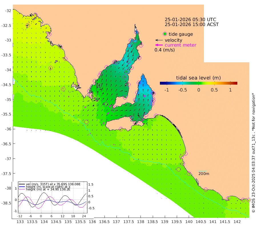 1cm/s 19T +10cm/s rms + 5cm/s 114T. SAM1DS 520m 8cm/s 62T +13cm/s rms + 5cm/s -36T. SAM2CP 100m 4cm/s 97T +21cm/s rms + 18cm/s 142T. SAM3MS 168m 4cm/s 97T +22cm/s rms + 0cm/s -30T. SAM4CY 117m 4cm/s 2T +23cm/s rms + 2cm/s 99T. SAM5CB 94m 13cm/s 54T +8cm/s rms + 3cm/s -172T. SAM6IS 83m 2cm/s 79T +11cm/s rms + 7cm/s 150T. SAM7DS 519m 13cm/s 58T +10cm/s rms + 2cm/s 87T. SAM8SG 47m 9cm/s 23T +20cm/s rms + 12cm/s -168T. NRSKAI 101m 19cm Warrnambool 18cm Port Fairy 18cm Portland 16cm Port Macdonnell 17cm Beachport 18cm Cape Rabelais (off) 19cm Robe 16cm Cape Jaffa 18cm Kingston 14cm Victor Harbor 19cm Vivonne Bay -31cm Kingscote -30cm American River -15cm Penneshaw -26cm Cape Jervis -45cm Second Valley -54cm Port Noarlunga -57cm Port Stanvac -61cm Brighton -60cm Glenelg -69cm Port Adelaide (Outer Harbor) -75cm Angus Inlet (Garden Island) -81cm Ardrossan -65cm Port Vincent -50cm Port Giles 6cm Stenhouse Bay 1cm Althorpe Island 7cm Pondalowie Bay -8cm Point Turton -8cm Port Victoria -19cm Cape Elizabeth -19cm Tiparra Reef Light -32cm Wallaroo -38cm Middle Bank -19cm Port Broughton -56cm Port Pirie -75cm Red Cliff Point (Beacon 5) -55cm Port Bonython -62cm Whyalla -60cm Western Shoal Beacon -41cm Franklin Harbor -26cm Franklin Harbor Entrance Beacon -13cm Arno Bay -7cm Port Neill -4cm Cape Hardy 1cm Tumby Bay 4cm Reevesby Island 12cm Port Lincoln 15cm Taylors Landing -3cm Whalers Bay 9cm Wedge Island Mooring 16cm Shelf Edge Mooring 21cm Coffin Bay Entrance Beacon 22cm Greenly Island 23cm Elliston 27cm Pearson Island 15cm Venus Bay 33cm Blanche Port (Streaky Bay) 35cm Thevenard 33cm St Francis Island
