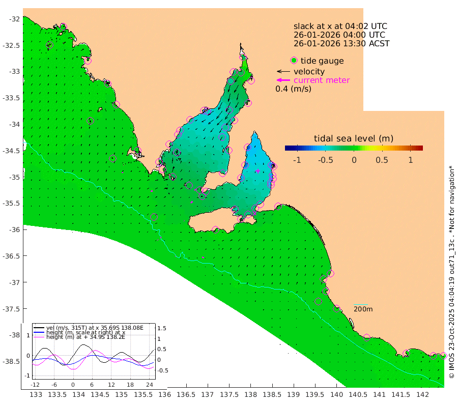 1cm/s 59T +10cm/s rms + 5cm/s 114T. SAM1DS 520m 5cm/s 72T +13cm/s rms + 5cm/s -36T. SAM2CP 100m 2cm/s 125T +21cm/s rms + 18cm/s 142T. SAM3MS 168m 5cm/s 96T +22cm/s rms + 0cm/s -30T. SAM4CY 117m 3cm/s 28T +23cm/s rms + 2cm/s 99T. SAM5CB 94m 7cm/s 47T +8cm/s rms + 3cm/s -172T. SAM6IS 83m 0cm/s 116T +11cm/s rms + 7cm/s 150T. SAM7DS 519m 5cm/s 79T +10cm/s rms + 2cm/s 87T. SAM8SG 47m 1cm/s 139T +20cm/s rms + 12cm/s -168T. NRSKAI 101m 2cm Warrnambool 3cm Port Fairy 2cm Portland -4cm Port Macdonnell 1cm Beachport 1cm Cape Rabelais (off) 0cm Robe -3cm Cape Jaffa -2cm Kingston -4cm Victor Harbor 3cm Vivonne Bay -38cm Kingscote -38cm American River -30cm Penneshaw -33cm Cape Jervis -47cm Second Valley -56cm Port Noarlunga -59cm Port Stanvac -60cm Brighton -62cm Glenelg -67cm Port Adelaide (Outer Harbor) -59cm Angus Inlet (Garden Island) -80cm Ardrossan -74cm Port Vincent -61cm Port Giles -17cm Stenhouse Bay -20cm Althorpe Island -14cm Pondalowie Bay -31cm Point Turton -28cm Port Victoria -35cm Cape Elizabeth -36cm Tiparra Reef Light -35cm Wallaroo -37cm Middle Bank -16cm Port Broughton -18cm Port Pirie -24cm Red Cliff Point (Beacon 5) -22cm Port Bonython -31cm Whyalla -35cm Western Shoal Beacon -45cm Franklin Harbor -44cm Franklin Harbor Entrance Beacon -37cm Arno Bay -38cm Port Neill -31cm Cape Hardy -27cm Tumby Bay -23cm Reevesby Island -19cm Port Lincoln -11cm Taylors Landing -25cm Whalers Bay -14cm Wedge Island Mooring -1cm Shelf Edge Mooring -3cm Coffin Bay Entrance Beacon 4cm Greenly Island -1cm Elliston 5cm Pearson Island -7cm Venus Bay -2cm Blanche Port (Streaky Bay) 2cm Thevenard 9cm St Francis Island