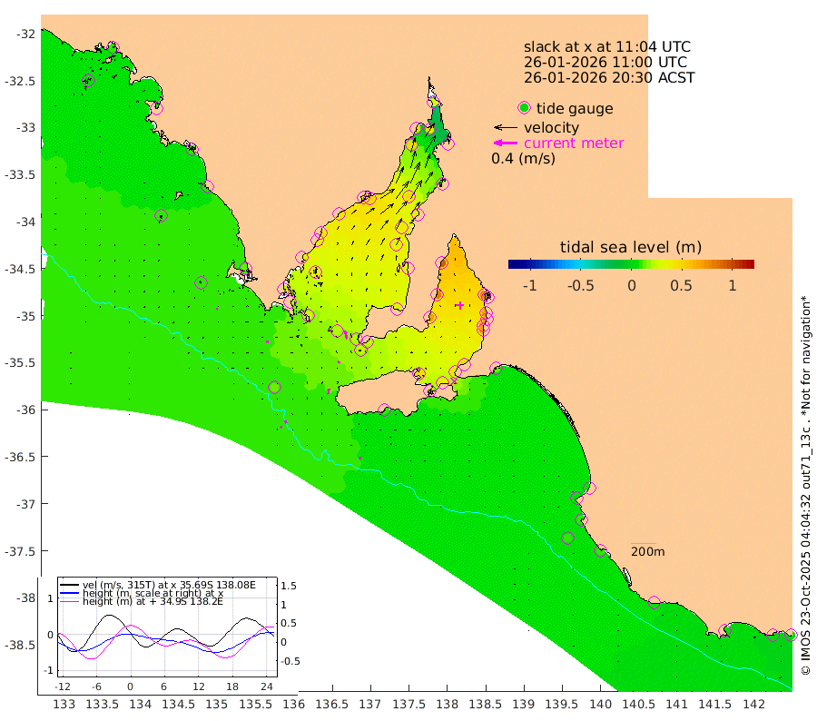 1cm/s 154T +10cm/s rms + 5cm/s 114T. SAM1DS 520m 5cm/s -87T +13cm/s rms + 5cm/s -36T. SAM2CP 100m 5cm/s -24T +21cm/s rms + 18cm/s 142T. SAM3MS 168m 3cm/s -14T +22cm/s rms + 0cm/s -30T. SAM4CY 117m 2cm/s -111T +23cm/s rms + 2cm/s 99T. SAM5CB 94m 3cm/s -79T +8cm/s rms + 3cm/s -172T. SAM6IS 83m 3cm/s -17T +11cm/s rms + 7cm/s 150T. SAM7DS 519m 14cm/s -14T +10cm/s rms + 2cm/s 87T. SAM8SG 47m 8cm/s 5T +20cm/s rms + 12cm/s -168T. NRSKAI 101m 3cm Warrnambool 2cm Port Fairy 5cm Portland 6cm Port Macdonnell 8cm Beachport 8cm Cape Rabelais (off) 8cm Robe 6cm Cape Jaffa 6cm Kingston 13cm Victor Harbor 10cm Vivonne Bay 47cm Kingscote 46cm American River 39cm Penneshaw 42cm Cape Jervis 52cm Second Valley 64cm Port Noarlunga 68cm Port Stanvac 69cm Brighton 70cm Glenelg 76cm Port Adelaide (Outer Harbor) 75cm Angus Inlet (Garden Island) 91cm Ardrossan 82cm Port Vincent 68cm Port Giles 23cm Stenhouse Bay 24cm Althorpe Island 19cm Pondalowie Bay 31cm Point Turton 30cm Port Victoria 34cm Cape Elizabeth 40cm Tiparra Reef Light 40cm Wallaroo 45cm Middle Bank 0cm Port Broughton 31cm Port Pirie 33cm Red Cliff Point (Beacon 5) 44cm Port Bonython 45cm Whyalla 46cm Western Shoal Beacon 39cm Franklin Harbor 47cm Franklin Harbor Entrance Beacon 44cm Arno Bay 43cm Port Neill 37cm Cape Hardy 33cm Tumby Bay 35cm Reevesby Island 28cm Port Lincoln 21cm Taylors Landing 29cm Whalers Bay 21cm Wedge Island Mooring 12cm Shelf Edge Mooring 12cm Coffin Bay Entrance Beacon 9cm Greenly Island 9cm Elliston 9cm Pearson Island 11cm Venus Bay 9cm Blanche Port (Streaky Bay) 8cm Thevenard 6cm St Francis Island