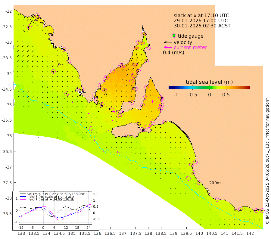 1cm/s -98T +10cm/s rms + 5cm/s 114T. SAM1DS 520m 7cm/s -118T +13cm/s rms + 5cm/s -36T. SAM2CP 100m 6cm/s -97T +21cm/s rms + 18cm/s 142T. SAM3MS 168m 13cm/s -80T +22cm/s rms + 0cm/s -30T. SAM4CY 117m 3cm/s -144T +23cm/s rms + 2cm/s 99T. SAM5CB 94m 4cm/s -124T +8cm/s rms + 3cm/s -172T. SAM6IS 83m 2cm/s -108T +11cm/s rms + 7cm/s 150T. SAM7DS 519m 10cm/s -53T +10cm/s rms + 2cm/s 87T. SAM8SG 47m 2cm/s -21T +20cm/s rms + 12cm/s -168T. NRSKAI 101m 33cm Warrnambool 32cm Port Fairy 31cm Portland 34cm Port Macdonnell 26cm Beachport 29cm Cape Rabelais (off) 30cm Robe 35cm Cape Jaffa 33cm Kingston 33cm Victor Harbor 21cm Vivonne Bay 46cm Kingscote 44cm American River 42cm Penneshaw 42cm Cape Jervis 46cm Second Valley 51cm Port Noarlunga 52cm Port Stanvac 51cm Brighton 53cm Glenelg 54cm Port Adelaide (Outer Harbor) 49cm Angus Inlet (Garden Island) 59cm Ardrossan 57cm Port Vincent 52cm Port Giles 36cm Stenhouse Bay 43cm Althorpe Island 35cm Pondalowie Bay 56cm Point Turton 55cm Port Victoria 57cm Cape Elizabeth 65cm Tiparra Reef Light 69cm Wallaroo 70cm Middle Bank 49cm Port Broughton 66cm Port Pirie 65cm Red Cliff Point (Beacon 5) 63cm Port Bonython 71cm Whyalla 73cm Western Shoal Beacon 66cm Franklin Harbor 67cm Franklin Harbor Entrance Beacon 60cm Arno Bay 63cm Port Neill 58cm Cape Hardy 54cm Tumby Bay 53cm Reevesby Island 46cm Port Lincoln 36cm Taylors Landing 50cm Whalers Bay 39cm Wedge Island Mooring 26cm Shelf Edge Mooring 35cm Coffin Bay Entrance Beacon 25cm Greenly Island 32cm Elliston 27cm Pearson Island 34cm Venus Bay 43cm Blanche Port (Streaky Bay) 39cm Thevenard 38cm St Francis Island