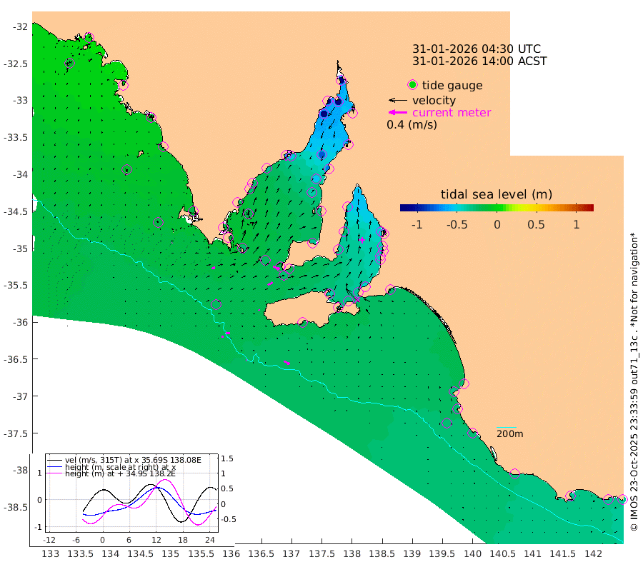 1cm/s 99T +10cm/s rms + 5cm/s 114T. SAM1DS 520m 7cm/s 71T +13cm/s rms + 5cm/s -36T. SAM2CP 100m 9cm/s 93T +21cm/s rms + 18cm/s 142T. SAM3MS 168m 14cm/s 116T +22cm/s rms + 0cm/s -30T. SAM4CY 117m 1cm/s 55T +23cm/s rms + 2cm/s 99T. SAM5CB 94m 12cm/s 61T +8cm/s rms + 3cm/s -172T. SAM6IS 83m 4cm/s 94T +11cm/s rms + 7cm/s 150T. SAM7DS 519m 15cm/s 110T +10cm/s rms + 2cm/s 87T. SAM8SG 47m 2cm/s 108T +20cm/s rms + 12cm/s -168T. NRSKAI 101m -37cm Warrnambool -34cm Port Fairy -34cm Portland -32cm Port Macdonnell -30cm Beachport -29cm Cape Rabelais (off) -29cm Robe -31cm Cape Jaffa -27cm Kingston -29cm Victor Harbor -21cm Vivonne Bay -38cm Kingscote -40cm American River -32cm Penneshaw -37cm Cape Jervis -46cm Second Valley -42cm Port Noarlunga -43cm Port Stanvac -44cm Brighton -41cm Glenelg -46cm Port Adelaide (Outer Harbor) -63cm Angus Inlet (Garden Island) -44cm Ardrossan -28cm Port Vincent -35cm Port Giles -21cm Stenhouse Bay -29cm Althorpe Island -22cm Pondalowie Bay -36cm Point Turton -33cm Port Victoria -41cm Cape Elizabeth -53cm Tiparra Reef Light -73cm Wallaroo -81cm Middle Bank -60cm Port Broughton -137cm Port Pirie -145cm Red Cliff Point (Beacon 5) -126cm Port Bonython -130cm Whyalla -117cm Western Shoal Beacon -64cm Franklin Harbor -50cm Franklin Harbor Entrance Beacon -35cm Arno Bay -30cm Port Neill -28cm Cape Hardy -24cm Tumby Bay -22cm Reevesby Island -19cm Port Lincoln -18cm Taylors Landing -28cm Whalers Bay -24cm Wedge Island Mooring -25cm Shelf Edge Mooring -16cm Coffin Bay Entrance Beacon -17cm Greenly Island -14cm Elliston -10cm Pearson Island -12cm Venus Bay -1cm Blanche Port (Streaky Bay) 1cm Thevenard -9cm St Francis Island
