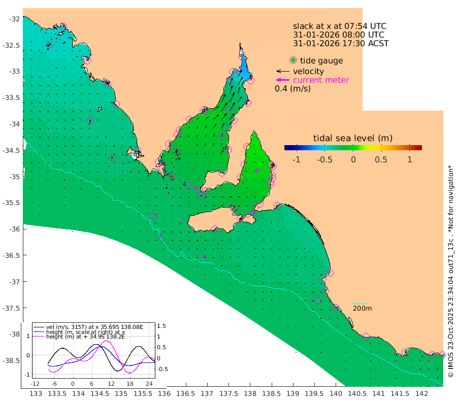 2cm/s 105T +10cm/s rms + 5cm/s 114T. SAM1DS 520m 1cm/s 50T +13cm/s rms + 5cm/s -36T. SAM2CP 100m 6cm/s 19T +21cm/s rms + 18cm/s 142T. SAM3MS 168m 13cm/s 83T +22cm/s rms + 0cm/s -30T. SAM4CY 117m 2cm/s 157T +23cm/s rms + 2cm/s 99T. SAM5CB 94m 2cm/s -54T +8cm/s rms + 3cm/s -172T. SAM6IS 83m 3cm/s 23T +11cm/s rms + 7cm/s 150T. SAM7DS 519m 10cm/s 31T +10cm/s rms + 2cm/s 87T. SAM8SG 47m 5cm/s 12T +20cm/s rms + 12cm/s -168T. NRSKAI 101m -24cm Warrnambool -24cm Port Fairy -25cm Portland -27cm Port Macdonnell -23cm Beachport -26cm Cape Rabelais (off) -27cm Robe -32cm Cape Jaffa -28cm Kingston -25cm Victor Harbor -19cm Vivonne Bay -10cm Kingscote -11cm American River -9cm Penneshaw -7cm Cape Jervis -3cm Second Valley 5cm Port Noarlunga 8cm Port Stanvac 6cm Brighton 9cm Glenelg 14cm Port Adelaide (Outer Harbor) 13cm Angus Inlet (Garden Island) 23cm Ardrossan 5cm Port Vincent 8cm Port Giles -20cm Stenhouse Bay -24cm Althorpe Island -24cm Pondalowie Bay -24cm Point Turton -21cm Port Victoria -21cm Cape Elizabeth -23cm Tiparra Reef Light -30cm Wallaroo -25cm Middle Bank -64cm Port Broughton -54cm Port Pirie -41cm Red Cliff Point (Beacon 5) -38cm Port Bonython -39cm Whyalla -37cm Western Shoal Beacon -21cm Franklin Harbor -12cm Franklin Harbor Entrance Beacon -12cm Arno Bay -13cm Port Neill -16cm Cape Hardy -18cm Tumby Bay -18cm Reevesby Island -19cm Port Lincoln -21cm Taylors Landing -22cm Whalers Bay -24cm Wedge Island Mooring -24cm Shelf Edge Mooring -30cm Coffin Bay Entrance Beacon -24cm Greenly Island -32cm Elliston -31cm Pearson Island -30cm Venus Bay -43cm Blanche Port (Streaky Bay) -39cm Thevenard -36cm St Francis Island