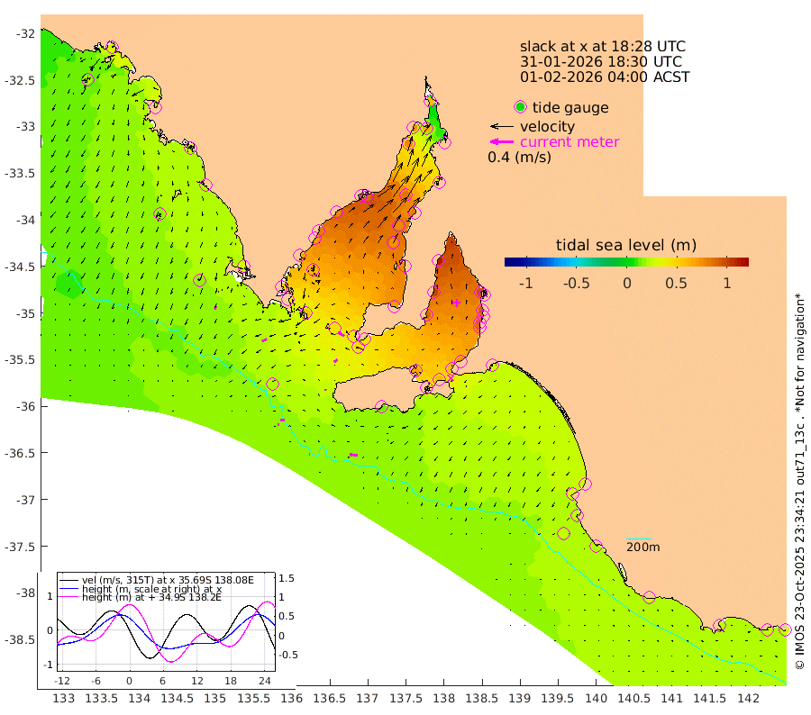 1cm/s -89T +10cm/s rms + 5cm/s 114T. SAM1DS 520m 9cm/s -118T +13cm/s rms + 5cm/s -36T. SAM2CP 100m 7cm/s -93T +21cm/s rms + 18cm/s 142T. SAM3MS 168m 14cm/s -84T +22cm/s rms + 0cm/s -30T. SAM4CY 117m 5cm/s -153T +23cm/s rms + 2cm/s 99T. SAM5CB 94m 7cm/s -124T +8cm/s rms + 3cm/s -172T. SAM6IS 83m 2cm/s -107T +11cm/s rms + 7cm/s 150T. SAM7DS 519m 12cm/s -57T +10cm/s rms + 2cm/s 87T. SAM8SG 47m 2cm/s -28T +20cm/s rms + 12cm/s -168T. NRSKAI 101m 26cm Warrnambool 26cm Port Fairy 24cm Portland 31cm Port Macdonnell 21cm Beachport 23cm Cape Rabelais (off) 24cm Robe 30cm Cape Jaffa 27cm Kingston 28cm Victor Harbor 13cm Vivonne Bay 66cm Kingscote 61cm American River 57cm Penneshaw 58cm Cape Jervis 71cm Second Valley 85cm Port Noarlunga 88cm Port Stanvac 87cm Brighton 91cm Glenelg 96cm Port Adelaide (Outer Harbor) 87cm Angus Inlet (Garden Island) 110cm Ardrossan 98cm Port Vincent 89cm Port Giles 42cm Stenhouse Bay 46cm Althorpe Island 38cm Pondalowie Bay 70cm Point Turton 71cm Port Victoria 74cm Cape Elizabeth 77cm Tiparra Reef Light 80cm Wallaroo 85cm Middle Bank 44cm Port Broughton 59cm Port Pirie 57cm Red Cliff Point (Beacon 5) 64cm Port Bonython 75cm Whyalla 77cm Western Shoal Beacon 87cm Franklin Harbor 89cm Franklin Harbor Entrance Beacon 79cm Arno Bay 80cm Port Neill 71cm Cape Hardy 65cm Tumby Bay 60cm Reevesby Island 52cm Port Lincoln 37cm Taylors Landing 59cm Whalers Bay 42cm Wedge Island Mooring 21cm Shelf Edge Mooring 27cm Coffin Bay Entrance Beacon 18cm Greenly Island 25cm Elliston 17cm Pearson Island 29cm Venus Bay 32cm Blanche Port (Streaky Bay) 27cm Thevenard 20cm St Francis Island
