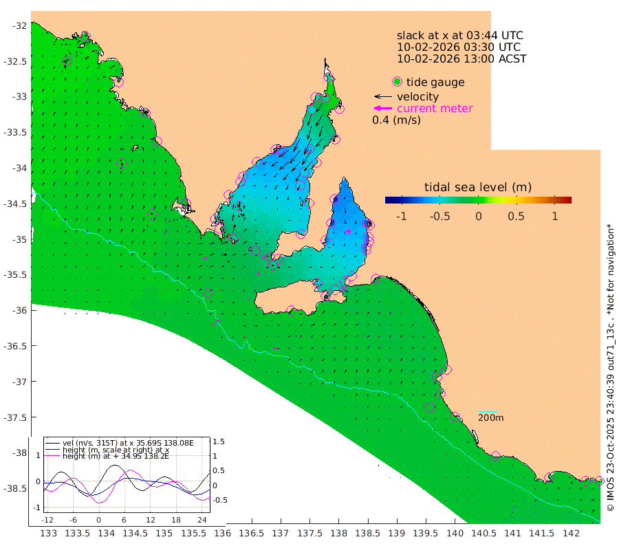 1cm/s 83T +10cm/s rms + 5cm/s 114T. SAM1DS 520m 7cm/s 67T +13cm/s rms + 5cm/s -36T. SAM2CP 100m 4cm/s 111T +21cm/s rms + 18cm/s 142T. SAM3MS 168m 8cm/s 102T +22cm/s rms + 0cm/s -30T. SAM4CY 117m 4cm/s 26T +23cm/s rms + 2cm/s 99T. SAM5CB 94m 6cm/s 41T +8cm/s rms + 3cm/s -172T. SAM6IS 83m 1cm/s 106T +11cm/s rms + 7cm/s 150T. SAM7DS 519m 7cm/s 103T +10cm/s rms + 2cm/s 87T. SAM8SG 47m 2cm/s 165T +20cm/s rms + 12cm/s -168T. NRSKAI 101m -11cm Warrnambool -10cm Port Fairy -11cm Portland -15cm Port Macdonnell -10cm Beachport -9cm Cape Rabelais (off) -11cm Robe -15cm Cape Jaffa -11cm Kingston -15cm Victor Harbor -4cm Vivonne Bay -51cm Kingscote -49cm American River -43cm Penneshaw -44cm Cape Jervis -59cm Second Valley -68cm Port Noarlunga -71cm Port Stanvac -73cm Brighton -73cm Glenelg -80cm Port Adelaide (Outer Harbor) -70cm Angus Inlet (Garden Island) -92cm Ardrossan -84cm Port Vincent -74cm Port Giles -27cm Stenhouse Bay -30cm Althorpe Island -22cm Pondalowie Bay -45cm Point Turton -44cm Port Victoria -51cm Cape Elizabeth -50cm Tiparra Reef Light -52cm Wallaroo -56cm Middle Bank -23cm Port Broughton -35cm Port Pirie -38cm Red Cliff Point (Beacon 5) -35cm Port Bonython -48cm Whyalla -52cm Western Shoal Beacon -64cm Franklin Harbor -62cm Franklin Harbor Entrance Beacon -51cm Arno Bay -50cm Port Neill -44cm Cape Hardy -39cm Tumby Bay -35cm Reevesby Island -31cm Port Lincoln -20cm Taylors Landing -38cm Whalers Bay -24cm Wedge Island Mooring -9cm Shelf Edge Mooring -10cm Coffin Bay Entrance Beacon -4cm Greenly Island -8cm Elliston 0cm Pearson Island -13cm Venus Bay -7cm Blanche Port (Streaky Bay) -3cm Thevenard -2cm St Francis Island