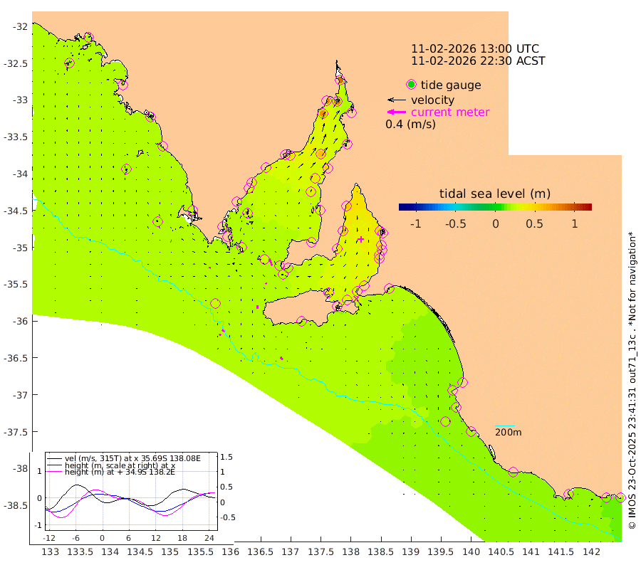 1cm/s -128T +10cm/s rms + 5cm/s 114T. SAM1DS 520m 4cm/s -85T +13cm/s rms + 5cm/s -36T. SAM2CP 100m 7cm/s -53T +21cm/s rms + 18cm/s 142T. SAM3MS 168m 8cm/s -41T +22cm/s rms + 0cm/s -30T. SAM4CY 117m 2cm/s -54T +23cm/s rms + 2cm/s 99T. SAM5CB 94m 3cm/s -43T +8cm/s rms + 3cm/s -172T. SAM6IS 83m 3cm/s -54T +11cm/s rms + 7cm/s 150T. SAM7DS 519m 16cm/s -23T +10cm/s rms + 2cm/s 87T. SAM8SG 47m 7cm/s -2T +20cm/s rms + 12cm/s -168T. NRSKAI 101m 17cm Warrnambool 18cm Port Fairy 20cm Portland 18cm Port Macdonnell 21cm Beachport 21cm Cape Rabelais (off) 20cm Robe 22cm Cape Jaffa 20cm Kingston 25cm Victor Harbor 20cm Vivonne Bay 41cm Kingscote 40cm American River 34cm Penneshaw 37cm Cape Jervis 43cm Second Valley 46cm Port Noarlunga 47cm Port Stanvac 48cm Brighton 47cm Glenelg 51cm Port Adelaide (Outer Harbor) 55cm Angus Inlet (Garden Island) 55cm Ardrossan 57cm Port Vincent 42cm Port Giles 22cm Stenhouse Bay 26cm Althorpe Island 22cm Pondalowie Bay 29cm Point Turton 28cm Port Victoria 37cm Cape Elizabeth 40cm Tiparra Reef Light 50cm Wallaroo 56cm Middle Bank 23cm Port Broughton 79cm Port Pirie 86cm Red Cliff Point (Beacon 5) 79cm Port Bonython 79cm Whyalla 74cm Western Shoal Beacon 48cm Franklin Harbor 45cm Franklin Harbor Entrance Beacon 37cm Arno Bay 34cm Port Neill 34cm Cape Hardy 31cm Tumby Bay 34cm Reevesby Island 26cm Port Lincoln 25cm Taylors Landing 28cm Whalers Bay 27cm Wedge Island Mooring 24cm Shelf Edge Mooring 24cm Coffin Bay Entrance Beacon 21cm Greenly Island 21cm Elliston 20cm Pearson Island 19cm Venus Bay 22cm Blanche Port (Streaky Bay) 20cm Thevenard 19cm St Francis Island