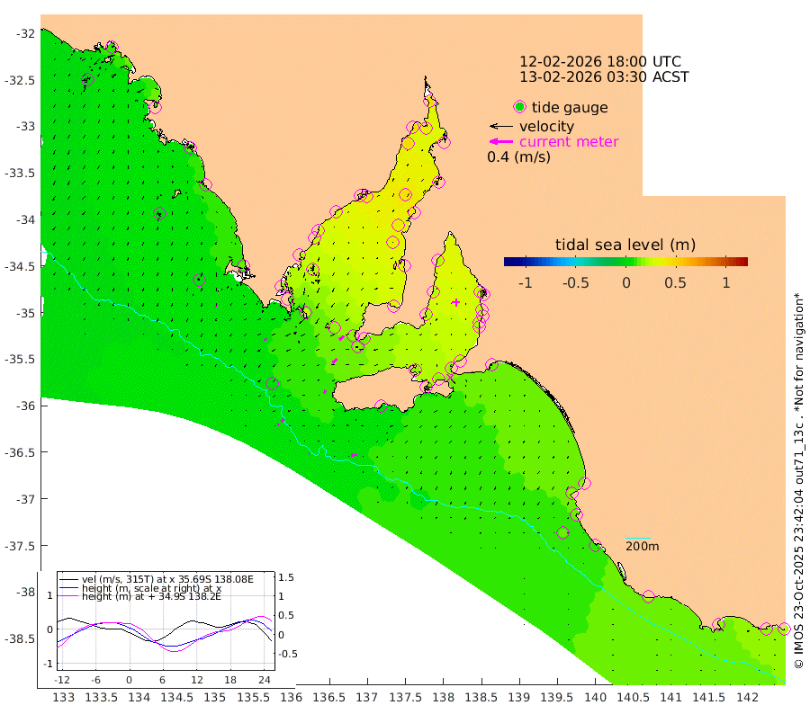 2cm/s -88T +10cm/s rms + 5cm/s 114T. SAM1DS 520m 5cm/s -128T +13cm/s rms + 5cm/s -36T. SAM2CP 100m 6cm/s -132T +21cm/s rms + 18cm/s 142T. SAM3MS 168m 10cm/s -95T +22cm/s rms + 0cm/s -30T. SAM4CY 117m 3cm/s -172T +23cm/s rms + 2cm/s 99T. SAM5CB 94m 10cm/s -132T +8cm/s rms + 3cm/s -172T. SAM6IS 83m 3cm/s -149T +11cm/s rms + 7cm/s 150T. SAM7DS 519m 10cm/s -130T +10cm/s rms + 2cm/s 87T. SAM8SG 47m 6cm/s -161T +20cm/s rms + 12cm/s -168T. NRSKAI 101m 19cm Warrnambool 18cm Port Fairy 15cm Portland 20cm Port Macdonnell 11cm Beachport 12cm Cape Rabelais (off) 14cm Robe 18cm Cape Jaffa 17cm Kingston 13cm Victor Harbor 3cm Vivonne Bay 19cm Kingscote 19cm American River 16cm Penneshaw 17cm Cape Jervis 21cm Second Valley 22cm Port Noarlunga 22cm Port Stanvac 19cm Brighton 22cm Glenelg 23cm Port Adelaide (Outer Harbor) 22cm Angus Inlet (Garden Island) 22cm Ardrossan 19cm Port Vincent 22cm Port Giles 14cm Stenhouse Bay 17cm Althorpe Island 16cm Pondalowie Bay 34cm Point Turton 32cm Port Victoria 35cm Cape Elizabeth 37cm Tiparra Reef Light 43cm Wallaroo 43cm Middle Bank 43cm Port Broughton 48cm Port Pirie 47cm Red Cliff Point (Beacon 5) 41cm Port Bonython 48cm Whyalla 48cm Western Shoal Beacon 47cm Franklin Harbor 38cm Franklin Harbor Entrance Beacon 29cm Arno Bay 27cm Port Neill 24cm Cape Hardy 21cm Tumby Bay 22cm Reevesby Island 17cm Port Lincoln 12cm Taylors Landing 24cm Whalers Bay 17cm Wedge Island Mooring 7cm Shelf Edge Mooring 12cm Coffin Bay Entrance Beacon 5cm Greenly Island 9cm Elliston 2cm Pearson Island 15cm Venus Bay 14cm Blanche Port (Streaky Bay) 10cm Thevenard 1cm St Francis Island