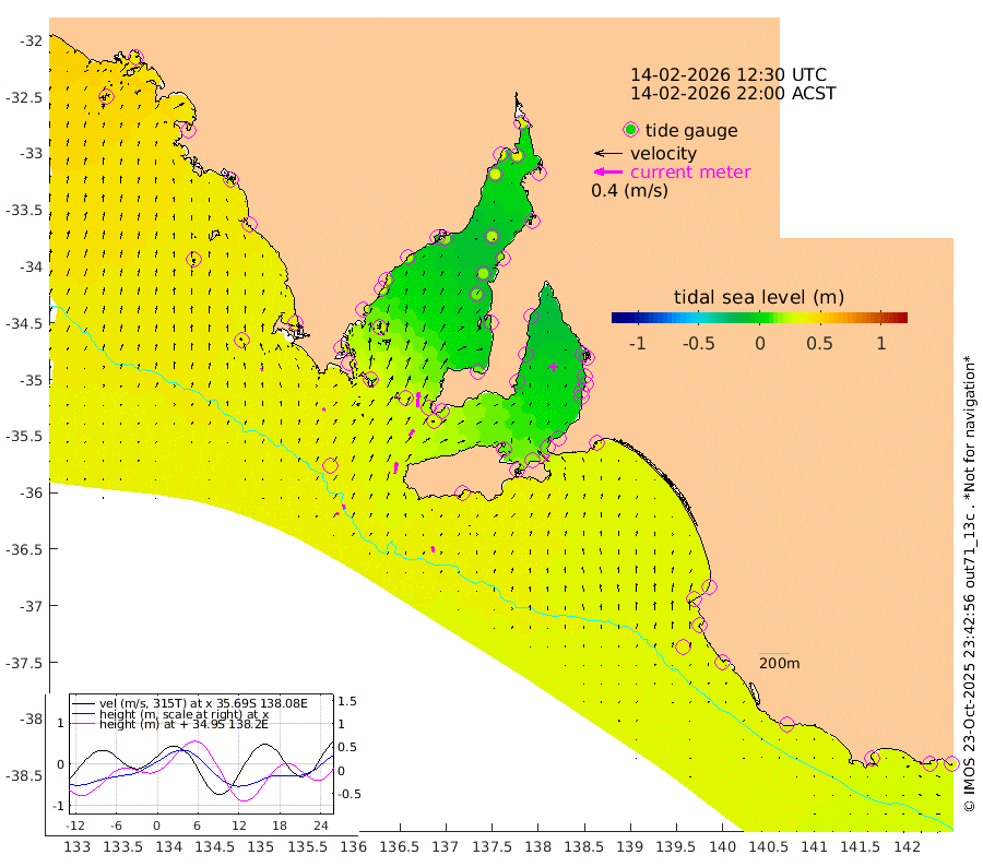 0cm/s -32T +10cm/s rms + 5cm/s 114T. SAM1DS 520m 4cm/s 14T +13cm/s rms + 5cm/s -36T. SAM2CP 100m 6cm/s -15T +21cm/s rms + 18cm/s 142T. SAM3MS 168m 8cm/s -12T +22cm/s rms + 0cm/s -30T. SAM4CY 117m 5cm/s -10T +23cm/s rms + 2cm/s 99T. SAM5CB 94m 11cm/s 38T +8cm/s rms + 3cm/s -172T. SAM6IS 83m 3cm/s -28T +11cm/s rms + 7cm/s 150T. SAM7DS 519m 22cm/s 4T +10cm/s rms + 2cm/s 87T. SAM8SG 47m 16cm/s 8T +20cm/s rms + 12cm/s -168T. NRSKAI 101m 30cm Warrnambool 28cm Port Fairy 32cm Portland 26cm Port Macdonnell 33cm Beachport 35cm Cape Rabelais (off) 31cm Robe 31cm Cape Jaffa 32cm Kingston 35cm Victor Harbor 36cm Vivonne Bay 12cm Kingscote 15cm American River 18cm Penneshaw 14cm Cape Jervis 7cm Second Valley -3cm Port Noarlunga -3cm Port Stanvac -2cm Brighton -4cm Glenelg -8cm Port Adelaide (Outer Harbor) -5cm Angus Inlet (Garden Island) -16cm Ardrossan -5cm Port Vincent -3cm Port Giles 22cm Stenhouse Bay 27cm Althorpe Island 22cm Pondalowie Bay 12cm Point Turton 10cm Port Victoria 12cm Cape Elizabeth 17cm Tiparra Reef Light 18cm Wallaroo 21cm Middle Bank 7cm Port Broughton 40cm Port Pirie 44cm Red Cliff Point (Beacon 5) 40cm Port Bonython 34cm Whyalla 31cm Western Shoal Beacon 4cm Franklin Harbor 16cm Franklin Harbor Entrance Beacon 20cm Arno Bay 25cm Port Neill 24cm Cape Hardy 27cm Tumby Bay 26cm Reevesby Island 28cm Port Lincoln 33cm Taylors Landing 19cm Whalers Bay 29cm Wedge Island Mooring 37cm Shelf Edge Mooring 37cm Coffin Bay Entrance Beacon 35cm Greenly Island 38cm Elliston 40cm Pearson Island 25cm Venus Bay 40cm Blanche Port (Streaky Bay) 41cm Thevenard 45cm St Francis Island