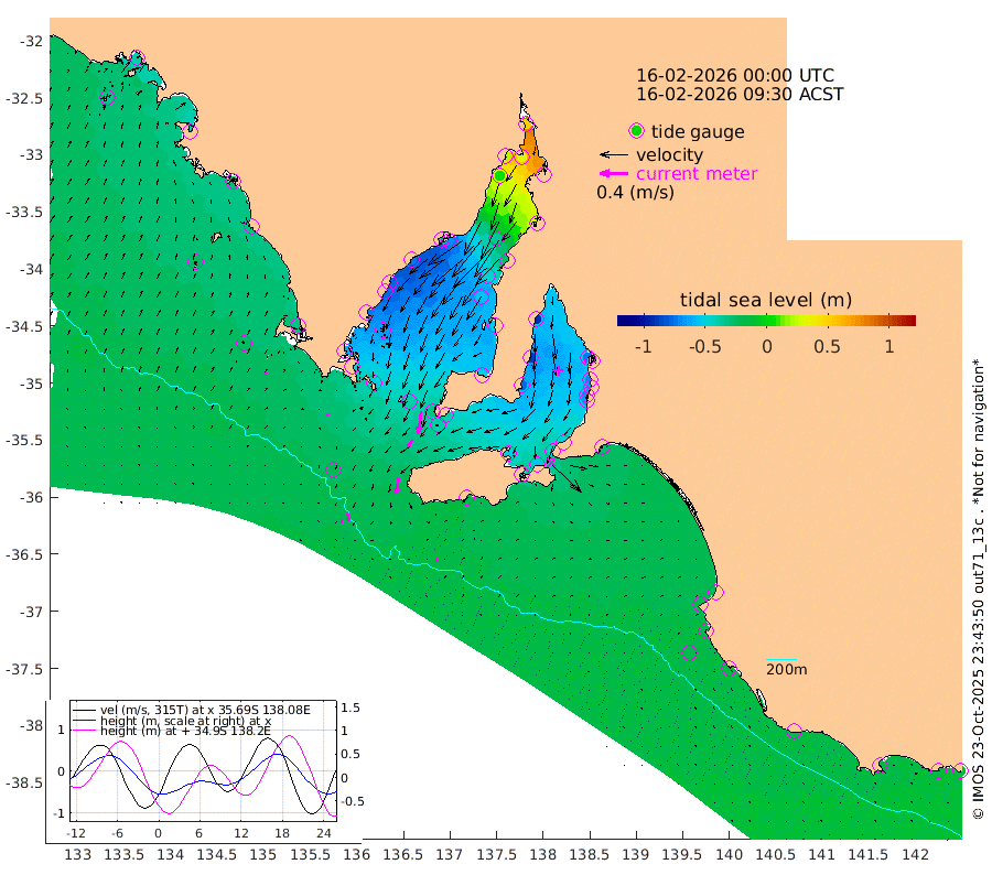 0cm/s -173T +10cm/s rms + 5cm/s 114T. SAM1DS 520m 2cm/s 125T +13cm/s rms + 5cm/s -36T. SAM2CP 100m 10cm/s 171T +21cm/s rms + 18cm/s 142T. SAM3MS 168m 6cm/s -172T +22cm/s rms + 0cm/s -30T. SAM4CY 117m 3cm/s 41T +23cm/s rms + 2cm/s 99T. SAM5CB 94m 12cm/s -141T +8cm/s rms + 3cm/s -172T. SAM6IS 83m 4cm/s 177T +11cm/s rms + 7cm/s 150T. SAM7DS 519m 32cm/s -172T +10cm/s rms + 2cm/s 87T. SAM8SG 47m 22cm/s -170T +20cm/s rms + 12cm/s -168T. NRSKAI 101m -16cm Warrnambool -17cm Port Fairy -18cm Portland -21cm Port Macdonnell -18cm Beachport -19cm Cape Rabelais (off) -19cm Robe -22cm Cape Jaffa -20cm Kingston -28cm Victor Harbor -21cm Vivonne Bay -52cm Kingscote -46cm American River -54cm Penneshaw -47cm Cape Jervis -51cm Second Valley -65cm Port Noarlunga -68cm Port Stanvac -66cm Brighton -70cm Glenelg -74cm Port Adelaide (Outer Harbor) -46cm Angus Inlet (Garden Island) -92cm Ardrossan -88cm Port Vincent -78cm Port Giles -40cm Stenhouse Bay -38cm Althorpe Island -30cm Pondalowie Bay -49cm Point Turton -52cm Port Victoria -53cm Cape Elizabeth -48cm Tiparra Reef Light -29cm Wallaroo -34cm Middle Bank 40cm Port Broughton 50cm Port Pirie 49cm Red Cliff Point (Beacon 5) 32cm Port Bonython 20cm Whyalla 7cm Western Shoal Beacon -38cm Franklin Harbor -71cm Franklin Harbor Entrance Beacon -73cm Arno Bay -79cm Port Neill -75cm Cape Hardy -73cm Tumby Bay -64cm Reevesby Island -61cm Port Lincoln -45cm Taylors Landing -50cm Whalers Bay -40cm Wedge Island Mooring -22cm Shelf Edge Mooring -31cm Coffin Bay Entrance Beacon -25cm Greenly Island -30cm Elliston -26cm Pearson Island -26cm Venus Bay -42cm Blanche Port (Streaky Bay) -40cm Thevenard -36cm St Francis Island