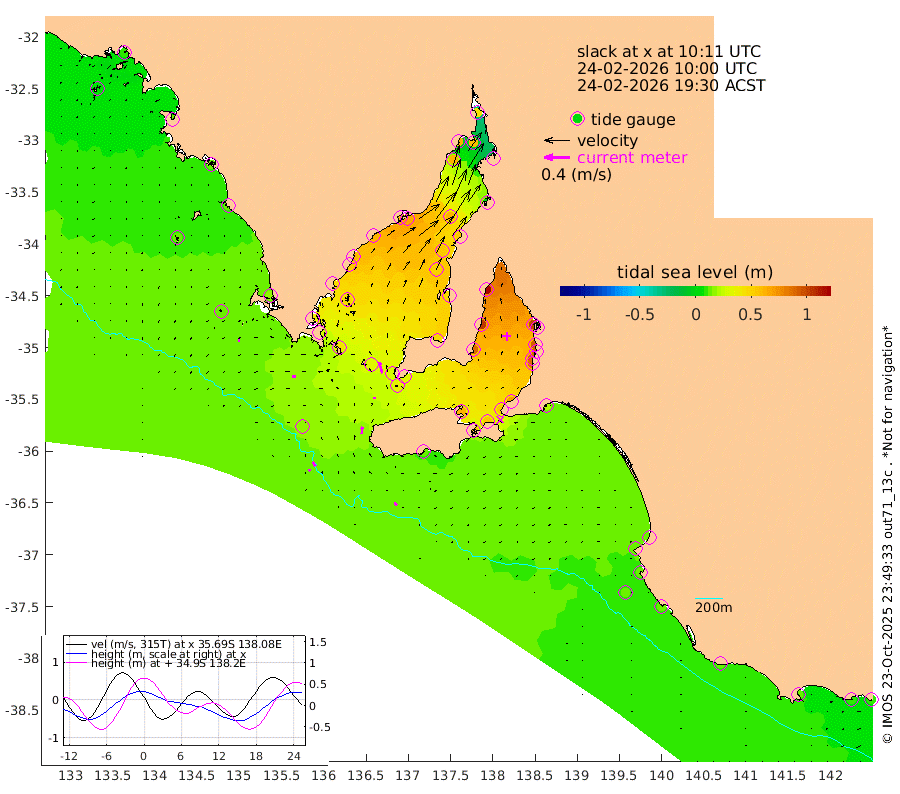 0cm/s -178T +10cm/s rms + 5cm/s 114T. SAM1DS 520m 6cm/s -93T +13cm/s rms + 5cm/s -36T. SAM2CP 100m 7cm/s -37T +21cm/s rms + 18cm/s 142T. SAM3MS 168m 6cm/s -37T +22cm/s rms + 0cm/s -30T. SAM4CY 117m 3cm/s -121T +23cm/s rms + 2cm/s 99T. SAM5CB 94m 3cm/s -9T +8cm/s rms + 3cm/s -172T. SAM6IS 83m 3cm/s -25T +11cm/s rms + 7cm/s 150T. SAM7DS 519m 18cm/s -15T +10cm/s rms + 2cm/s 87T. SAM8SG 47m 10cm/s 5T +20cm/s rms + 12cm/s -168T. NRSKAI 101m 10cm Warrnambool 9cm Port Fairy 12cm Portland 13cm Port Macdonnell 14cm Beachport 14cm Cape Rabelais (off) 14cm Robe 14cm Cape Jaffa 12cm Kingston 20cm Victor Harbor 14cm Vivonne Bay 64cm Kingscote 59cm American River 54cm Penneshaw 55cm Cape Jervis 70cm Second Valley 84cm Port Noarlunga 88cm Port Stanvac 91cm Brighton 93cm Glenelg 100cm Port Adelaide (Outer Harbor) 95cm Angus Inlet (Garden Island) 118cm Ardrossan 103cm Port Vincent 89cm Port Giles 33cm Stenhouse Bay 34cm Althorpe Island 27cm Pondalowie Bay 45cm Point Turton 46cm Port Victoria 50cm Cape Elizabeth 55cm Tiparra Reef Light 56cm Wallaroo 63cm Middle Bank 6cm Port Broughton 44cm Port Pirie 45cm Red Cliff Point (Beacon 5) 57cm Port Bonython 62cm Whyalla 61cm Western Shoal Beacon 57cm Franklin Harbor 67cm Franklin Harbor Entrance Beacon 61cm Arno Bay 61cm Port Neill 53cm Cape Hardy 48cm Tumby Bay 46cm Reevesby Island 40cm Port Lincoln 29cm Taylors Landing 42cm Whalers Bay 31cm Wedge Island Mooring 18cm Shelf Edge Mooring 16cm Coffin Bay Entrance Beacon 13cm Greenly Island 15cm Elliston 12cm Pearson Island 15cm Venus Bay 12cm Blanche Port (Streaky Bay) 10cm Thevenard 5cm St Francis Island