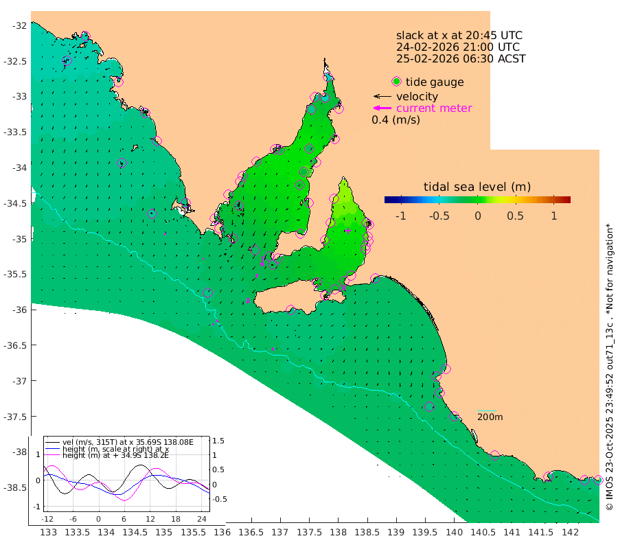 0cm/s -70T +10cm/s rms + 5cm/s 114T. SAM1DS 520m 3cm/s -169T +13cm/s rms + 5cm/s -36T. SAM2CP 100m 5cm/s 143T +21cm/s rms + 18cm/s 142T. SAM3MS 168m 7cm/s -180T +22cm/s rms + 0cm/s -30T. SAM4CY 117m 3cm/s 170T +23cm/s rms + 2cm/s 99T. SAM5CB 94m 7cm/s -166T +8cm/s rms + 3cm/s -172T. SAM6IS 83m 3cm/s 145T +11cm/s rms + 7cm/s 150T. SAM7DS 519m 22cm/s -178T +10cm/s rms + 2cm/s 87T. SAM8SG 47m 12cm/s -172T +20cm/s rms + 12cm/s -168T. NRSKAI 101m -31cm Warrnambool -31cm Port Fairy -31cm Portland -26cm Port Macdonnell -30cm Beachport -31cm Cape Rabelais (off) -29cm Robe -29cm Cape Jaffa -29cm Kingston -31cm Victor Harbor -32cm Vivonne Bay -5cm Kingscote -7cm American River -13cm Penneshaw -10cm Cape Jervis 0cm Second Valley 8cm Port Noarlunga 9cm Port Stanvac 10cm Brighton 11cm Glenelg 15cm Port Adelaide (Outer Harbor) 8cm Angus Inlet (Garden Island) 23cm Ardrossan 18cm Port Vincent 11cm Port Giles -16cm Stenhouse Bay -20cm Althorpe Island -17cm Pondalowie Bay -11cm Point Turton -13cm Port Victoria -11cm Cape Elizabeth -18cm Tiparra Reef Light -22cm Wallaroo -24cm Middle Bank -1cm Port Broughton -46cm Port Pirie -47cm Red Cliff Point (Beacon 5) -42cm Port Bonython -39cm Whyalla -36cm Western Shoal Beacon -7cm Franklin Harbor -17cm Franklin Harbor Entrance Beacon -18cm Arno Bay -18cm Port Neill -22cm Cape Hardy -23cm Tumby Bay -28cm Reevesby Island -26cm Port Lincoln -27cm Taylors Landing -17cm Whalers Bay -25cm Wedge Island Mooring -31cm Shelf Edge Mooring -33cm Coffin Bay Entrance Beacon -34cm Greenly Island -33cm Elliston -36cm Pearson Island -23cm Venus Bay -38cm Blanche Port (Streaky Bay) -40cm Thevenard -47cm St Francis Island