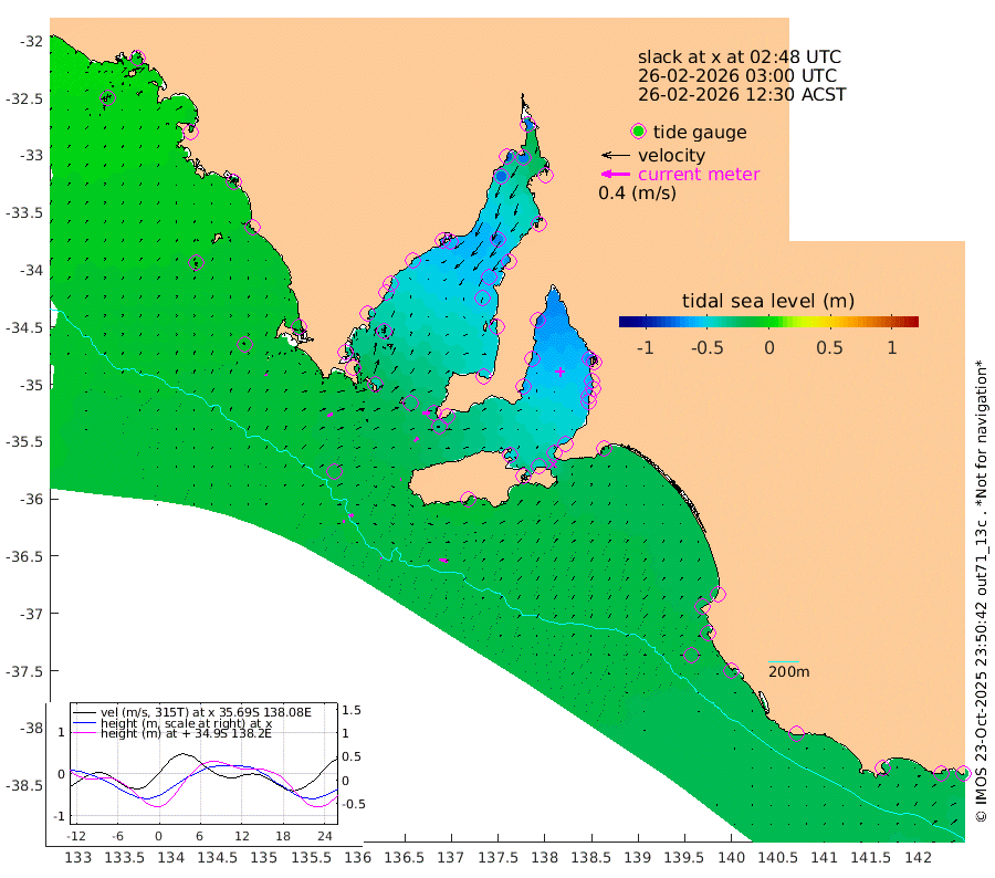 1cm/s 107T +10cm/s rms + 5cm/s 114T. SAM1DS 520m 7cm/s 65T +13cm/s rms + 5cm/s -36T. SAM2CP 100m 6cm/s 86T +21cm/s rms + 18cm/s 142T. SAM3MS 168m 12cm/s 101T +22cm/s rms + 0cm/s -30T. SAM4CY 117m 3cm/s 32T +23cm/s rms + 2cm/s 99T. SAM5CB 94m 7cm/s 48T +8cm/s rms + 3cm/s -172T. SAM6IS 83m 2cm/s 85T +11cm/s rms + 7cm/s 150T. SAM7DS 519m 10cm/s 90T +10cm/s rms + 2cm/s 87T. SAM8SG 47m 1cm/s 100T +20cm/s rms + 12cm/s -168T. NRSKAI 101m -25cm Warrnambool -22cm Port Fairy -23cm Portland -25cm Port Macdonnell -20cm Beachport -21cm Cape Rabelais (off) -22cm Robe -24cm Cape Jaffa -21cm Kingston -22cm Victor Harbor -12cm Vivonne Bay -48cm Kingscote -47cm American River -42cm Penneshaw -43cm Cape Jervis -54cm Second Valley -59cm Port Noarlunga -62cm Port Stanvac -62cm Brighton -63cm Glenelg -68cm Port Adelaide (Outer Harbor) -67cm Angus Inlet (Garden Island) -76cm Ardrossan -63cm Port Vincent -62cm Port Giles -30cm Stenhouse Bay -33cm Althorpe Island -27cm Pondalowie Bay -48cm Point Turton -45cm Port Victoria -50cm Cape Elizabeth -59cm Tiparra Reef Light -65cm Wallaroo -69cm Middle Bank -49cm Port Broughton -75cm Port Pirie -74cm Red Cliff Point (Beacon 5) -73cm Port Bonython -81cm Whyalla -78cm Western Shoal Beacon -64cm Franklin Harbor -59cm Franklin Harbor Entrance Beacon -49cm Arno Bay -49cm Port Neill -43cm Cape Hardy -38cm Tumby Bay -34cm Reevesby Island -30cm Port Lincoln -22cm Taylors Landing -39cm Whalers Bay -28cm Wedge Island Mooring -17cm Shelf Edge Mooring -15cm Coffin Bay Entrance Beacon -10cm Greenly Island -12cm Elliston -7cm Pearson Island -16cm Venus Bay -9cm Blanche Port (Streaky Bay) -4cm Thevenard -5cm St Francis Island