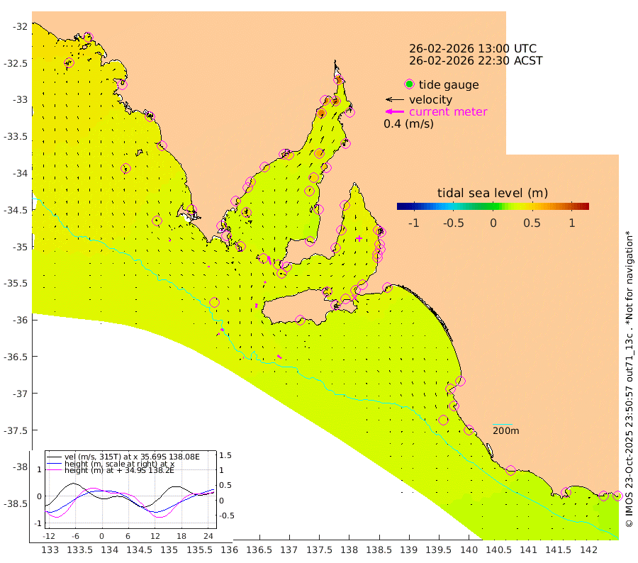 1cm/s -91T +10cm/s rms + 5cm/s 114T. SAM1DS 520m 4cm/s -81T +13cm/s rms + 5cm/s -36T. SAM2CP 100m 7cm/s -60T +21cm/s rms + 18cm/s 142T. SAM3MS 168m 10cm/s -49T +22cm/s rms + 0cm/s -30T. SAM4CY 117m 3cm/s -36T +23cm/s rms + 2cm/s 99T. SAM5CB 94m 4cm/s -22T +8cm/s rms + 3cm/s -172T. SAM6IS 83m 3cm/s -63T +11cm/s rms + 7cm/s 150T. SAM7DS 519m 19cm/s -18T +10cm/s rms + 2cm/s 87T. SAM8SG 47m 9cm/s 1T +20cm/s rms + 12cm/s -168T. NRSKAI 101m 26cm Warrnambool 26cm Port Fairy 29cm Portland 28cm Port Macdonnell 31cm Beachport 32cm Cape Rabelais (off) 30cm Robe 34cm Cape Jaffa 30cm Kingston 36cm Victor Harbor 30cm Vivonne Bay 42cm Kingscote 42cm American River 38cm Penneshaw 39cm Cape Jervis 42cm Second Valley 42cm Port Noarlunga 42cm Port Stanvac 44cm Brighton 44cm Glenelg 44cm Port Adelaide (Outer Harbor) 49cm Angus Inlet (Garden Island) 45cm Ardrossan 48cm Port Vincent 39cm Port Giles 31cm Stenhouse Bay 37cm Althorpe Island 31cm Pondalowie Bay 35cm Point Turton 37cm Port Victoria 40cm Cape Elizabeth 46cm Tiparra Reef Light 56cm Wallaroo 61cm Middle Bank 37cm Port Broughton 87cm Port Pirie 89cm Red Cliff Point (Beacon 5) 83cm Port Bonython 84cm Whyalla 80cm Western Shoal Beacon 45cm Franklin Harbor 48cm Franklin Harbor Entrance Beacon 44cm Arno Bay 42cm Port Neill 43cm Cape Hardy 42cm Tumby Bay 42cm Reevesby Island 38cm Port Lincoln 36cm Taylors Landing 38cm Whalers Bay 37cm Wedge Island Mooring 35cm Shelf Edge Mooring 37cm Coffin Bay Entrance Beacon 34cm Greenly Island 38cm Elliston 37cm Pearson Island 31cm Venus Bay 42cm Blanche Port (Streaky Bay) 40cm Thevenard 38cm St Francis Island