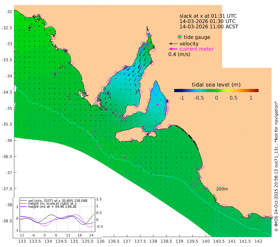 1cm/s 105T +10cm/s rms + 5cm/s 114T. SAM1DS 520m 6cm/s 68T +13cm/s rms + 5cm/s -36T. SAM2CP 100m 6cm/s 109T +21cm/s rms + 18cm/s 142T. SAM3MS 168m 9cm/s 118T +22cm/s rms + 0cm/s -30T. SAM4CY 117m 3cm/s 23T +23cm/s rms + 2cm/s 99T. SAM5CB 94m 4cm/s 77T +8cm/s rms + 3cm/s -172T. SAM6IS 83m 2cm/s 117T +11cm/s rms + 7cm/s 150T. SAM7DS 519m 11cm/s 136T +10cm/s rms + 2cm/s 87T. SAM8SG 47m 5cm/s 175T +20cm/s rms + 12cm/s -168T. NRSKAI 101m -26cm Warrnambool -22cm Port Fairy -22cm Portland -22cm Port Macdonnell -19cm Beachport -20cm Cape Rabelais (off) -20cm Robe -21cm Cape Jaffa -21cm Kingston -21cm Victor Harbor -12cm Vivonne Bay -40cm Kingscote -37cm American River -36cm Penneshaw -36cm Cape Jervis -43cm Second Valley -49cm Port Noarlunga -52cm Port Stanvac -50cm Brighton -54cm Glenelg -57cm Port Adelaide (Outer Harbor) -58cm Angus Inlet (Garden Island) -63cm Ardrossan -48cm Port Vincent -52cm Port Giles -25cm Stenhouse Bay -28cm Althorpe Island -23cm Pondalowie Bay -42cm Point Turton -41cm Port Victoria -45cm Cape Elizabeth -53cm Tiparra Reef Light -57cm Wallaroo -62cm Middle Bank -30cm Port Broughton -62cm Port Pirie -67cm Red Cliff Point (Beacon 5) -68cm Port Bonython -70cm Whyalla -66cm Western Shoal Beacon -54cm Franklin Harbor -56cm Franklin Harbor Entrance Beacon -49cm Arno Bay -51cm Port Neill -42cm Cape Hardy -37cm Tumby Bay -33cm Reevesby Island -30cm Port Lincoln -22cm Taylors Landing -33cm Whalers Bay -26cm Wedge Island Mooring -16cm Shelf Edge Mooring -15cm Coffin Bay Entrance Beacon -10cm Greenly Island -11cm Elliston -6cm Pearson Island -13cm Venus Bay -7cm Blanche Port (Streaky Bay) -5cm Thevenard 2cm St Francis Island