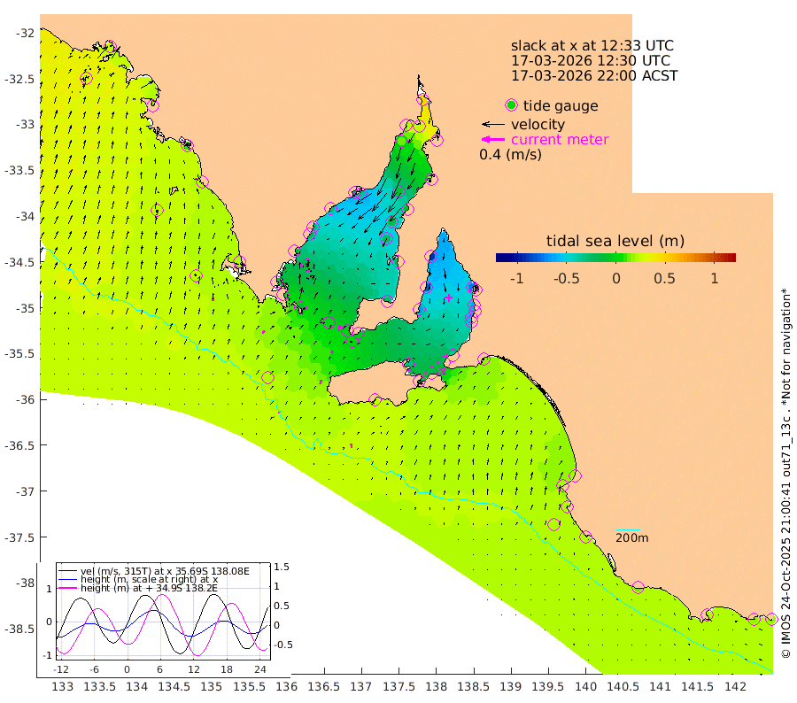 0cm/s -66T +10cm/s rms + 5cm/s 114T. SAM1DS 520m 5cm/s 49T +13cm/s rms + 5cm/s -36T. SAM2CP 100m 1cm/s -15T +21cm/s rms + 18cm/s 142T. SAM3MS 168m 7cm/s -4T +22cm/s rms + 0cm/s -30T. SAM4CY 117m 6cm/s 12T +23cm/s rms + 2cm/s 99T. SAM5CB 94m 4cm/s 22T +8cm/s rms + 3cm/s -172T. SAM6IS 83m 1cm/s -61T +11cm/s rms + 7cm/s 150T. SAM7DS 519m 9cm/s 22T +10cm/s rms + 2cm/s 87T. SAM8SG 47m 6cm/s 8T +20cm/s rms + 12cm/s -168T. NRSKAI 101m 18cm Warrnambool 18cm Port Fairy 20cm Portland 15cm Port Macdonnell 21cm Beachport 22cm Cape Rabelais (off) 19cm Robe 21cm Cape Jaffa 20cm Kingston 18cm Victor Harbor 24cm Vivonne Bay -32cm Kingscote -24cm American River -19cm Penneshaw -22cm Cape Jervis -34cm Second Valley -58cm Port Noarlunga -61cm Port Stanvac -59cm Brighton -63cm Glenelg -72cm Port Adelaide (Outer Harbor) -59cm Angus Inlet (Garden Island) -92cm Ardrossan -80cm Port Vincent -64cm Port Giles -5cm Stenhouse Bay 1cm Althorpe Island 0cm Pondalowie Bay -25cm Point Turton -24cm Port Victoria -25cm Cape Elizabeth -21cm Tiparra Reef Light -13cm Wallaroo -14cm Middle Bank 17cm Port Broughton 42cm Port Pirie 50cm Red Cliff Point (Beacon 5) 23cm Port Bonython 19cm Whyalla 14cm Western Shoal Beacon -31cm Franklin Harbor -32cm Franklin Harbor Entrance Beacon -28cm Arno Bay -29cm Port Neill -20cm Cape Hardy -14cm Tumby Bay -15cm Reevesby Island -7cm Port Lincoln 6cm Taylors Landing -13cm Whalers Bay 3cm Wedge Island Mooring 22cm Shelf Edge Mooring 19cm Coffin Bay Entrance Beacon 23cm Greenly Island 25cm Elliston 26cm Pearson Island 10cm Venus Bay 22cm Blanche Port (Streaky Bay) 24cm Thevenard 29cm St Francis Island