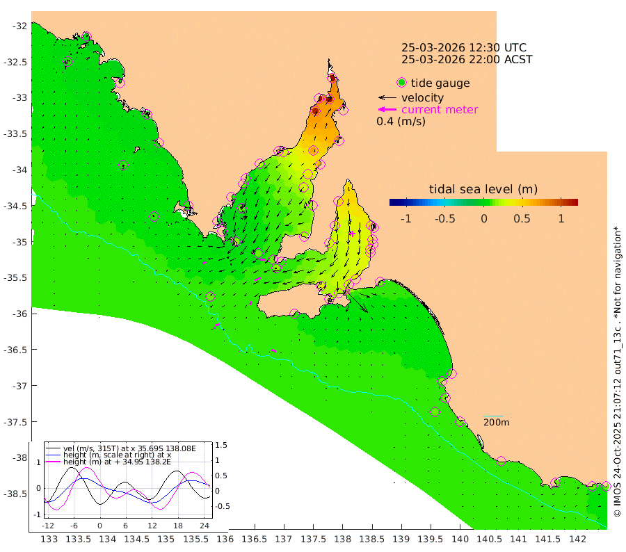 1cm/s -115T +10cm/s rms + 5cm/s 114T. SAM1DS 520m 8cm/s -120T +13cm/s rms + 5cm/s -36T. SAM2CP 100m 8cm/s -109T +21cm/s rms + 18cm/s 142T. SAM3MS 168m 10cm/s -69T +22cm/s rms + 0cm/s -30T. SAM4CY 117m 1cm/s -86T +23cm/s rms + 2cm/s 99T. SAM5CB 94m 14cm/s -117T +8cm/s rms + 3cm/s -172T. SAM6IS 83m 4cm/s -110T +11cm/s rms + 7cm/s 150T. SAM7DS 519m 13cm/s -93T +10cm/s rms + 2cm/s 87T. SAM8SG 47m 8cm/s -155T +20cm/s rms + 12cm/s -168T. NRSKAI 101m 12cm Warrnambool 13cm Port Fairy 14cm Portland 13cm Port Macdonnell 13cm Beachport 14cm Cape Rabelais (off) 12cm Robe 15cm Cape Jaffa 13cm Kingston 15cm Victor Harbor 9cm Vivonne Bay 30cm Kingscote 35cm American River 22cm Penneshaw 31cm Cape Jervis 39cm Second Valley 39cm Port Noarlunga 40cm Port Stanvac 42cm Brighton 42cm Glenelg 45cm Port Adelaide (Outer Harbor) 66cm Angus Inlet (Garden Island) 46cm Ardrossan 37cm Port Vincent 28cm Port Giles 10cm Stenhouse Bay 18cm Althorpe Island 13cm Pondalowie Bay 19cm Point Turton 22cm Port Victoria 28cm Cape Elizabeth 40cm Tiparra Reef Light 62cm Wallaroo 67cm Middle Bank 64cm Port Broughton 134cm Port Pirie 144cm Red Cliff Point (Beacon 5) 123cm Port Bonython 122cm Whyalla 112cm Western Shoal Beacon 48cm Franklin Harbor 31cm Franklin Harbor Entrance Beacon 20cm Arno Bay 14cm Port Neill 15cm Cape Hardy 11cm Tumby Bay 15cm Reevesby Island 6cm Port Lincoln 6cm Taylors Landing 18cm Whalers Bay 13cm Wedge Island Mooring 14cm Shelf Edge Mooring 11cm Coffin Bay Entrance Beacon 10cm Greenly Island 9cm Elliston 10cm Pearson Island 10cm Venus Bay 5cm Blanche Port (Streaky Bay) 3cm Thevenard 11cm St Francis Island