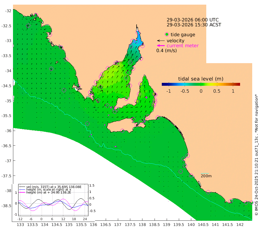 1cm/s 117T +10cm/s rms + 5cm/s 114T. SAM1DS 520m 1cm/s 13T +13cm/s rms + 5cm/s -36T. SAM2CP 100m 5cm/s 27T +21cm/s rms + 18cm/s 142T. SAM3MS 168m 8cm/s 86T +22cm/s rms + 0cm/s -30T. SAM4CY 117m 3cm/s -170T +23cm/s rms + 2cm/s 99T. SAM5CB 94m 6cm/s 43T +8cm/s rms + 3cm/s -172T. SAM6IS 83m 3cm/s 44T +11cm/s rms + 7cm/s 150T. SAM7DS 519m 10cm/s 31T +10cm/s rms + 2cm/s 87T. SAM8SG 47m 7cm/s 13T +20cm/s rms + 12cm/s -168T. NRSKAI 101m -8cm Warrnambool -10cm Port Fairy -11cm Portland -12cm Port Macdonnell -11cm Beachport -12cm Cape Rabelais (off) -12cm Robe -14cm Cape Jaffa -11cm Kingston -9cm Victor Harbor -9cm Vivonne Bay 2cm Kingscote -3cm American River 3cm Penneshaw 1cm Cape Jervis 2cm Second Valley 11cm Port Noarlunga 13cm Port Stanvac 10cm Brighton 13cm Glenelg 15cm Port Adelaide (Outer Harbor) 4cm Angus Inlet (Garden Island) 23cm Ardrossan 14cm Port Vincent 17cm Port Giles -3cm Stenhouse Bay -5cm Althorpe Island -7cm Pondalowie Bay 1cm Point Turton 0cm Port Victoria -1cm Cape Elizabeth -1cm Tiparra Reef Light -14cm Wallaroo -13cm Middle Bank -47cm Port Broughton -59cm Port Pirie -53cm Red Cliff Point (Beacon 5) -46cm Port Bonython -42cm Whyalla -34cm Western Shoal Beacon -5cm Franklin Harbor 9cm Franklin Harbor Entrance Beacon 10cm Arno Bay 15cm Port Neill 10cm Cape Hardy 8cm Tumby Bay 6cm Reevesby Island 4cm Port Lincoln -3cm Taylors Landing -1cm Whalers Bay -6cm Wedge Island Mooring -12cm Shelf Edge Mooring -10cm Coffin Bay Entrance Beacon -11cm Greenly Island -12cm Elliston -16cm Pearson Island -9cm Venus Bay -12cm Blanche Port (Streaky Bay) -10cm Thevenard -13cm St Francis Island