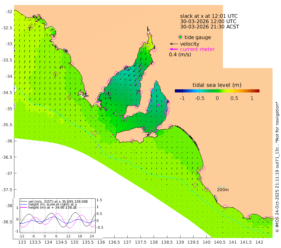 0cm/s -67T +10cm/s rms + 5cm/s 114T. SAM1DS 520m 4cm/s 47T +13cm/s rms + 5cm/s -36T. SAM2CP 100m 2cm/s -38T +21cm/s rms + 18cm/s 142T. SAM3MS 168m 6cm/s -9T +22cm/s rms + 0cm/s -30T. SAM4CY 117m 4cm/s 11T +23cm/s rms + 2cm/s 99T. SAM5CB 94m 4cm/s 30T +8cm/s rms + 3cm/s -172T. SAM6IS 83m 2cm/s -55T +11cm/s rms + 7cm/s 150T. SAM7DS 519m 7cm/s 15T +10cm/s rms + 2cm/s 87T. SAM8SG 47m 6cm/s 6T +20cm/s rms + 12cm/s -168T. NRSKAI 101m 14cm Warrnambool 14cm Port Fairy 15cm Portland 12cm Port Macdonnell 17cm Beachport 17cm Cape Rabelais (off) 14cm Robe 16cm Cape Jaffa 16cm Kingston 15cm Victor Harbor 18cm Vivonne Bay -18cm Kingscote -12cm American River -9cm Penneshaw -12cm Cape Jervis -19cm Second Valley -35cm Port Noarlunga -37cm Port Stanvac -36cm Brighton -39cm Glenelg -44cm Port Adelaide (Outer Harbor) -37cm Angus Inlet (Garden Island) -57cm Ardrossan -42cm Port Vincent -39cm Port Giles -3cm Stenhouse Bay 2cm Althorpe Island 1cm Pondalowie Bay -16cm Point Turton -16cm Port Victoria -12cm Cape Elizabeth -13cm Tiparra Reef Light -7cm Wallaroo -7cm Middle Bank 12cm Port Broughton 33cm Port Pirie 43cm Red Cliff Point (Beacon 5) 23cm Port Bonython 17cm Whyalla 11cm Western Shoal Beacon -17cm Franklin Harbor -19cm Franklin Harbor Entrance Beacon -18cm Arno Bay -16cm Port Neill -11cm Cape Hardy -8cm Tumby Bay -9cm Reevesby Island -4cm Port Lincoln 6cm Taylors Landing -9cm Whalers Bay 4cm Wedge Island Mooring 17cm Shelf Edge Mooring 15cm Coffin Bay Entrance Beacon 17cm Greenly Island 16cm Elliston 19cm Pearson Island 7cm Venus Bay 15cm Blanche Port (Streaky Bay) 15cm Thevenard 19cm St Francis Island