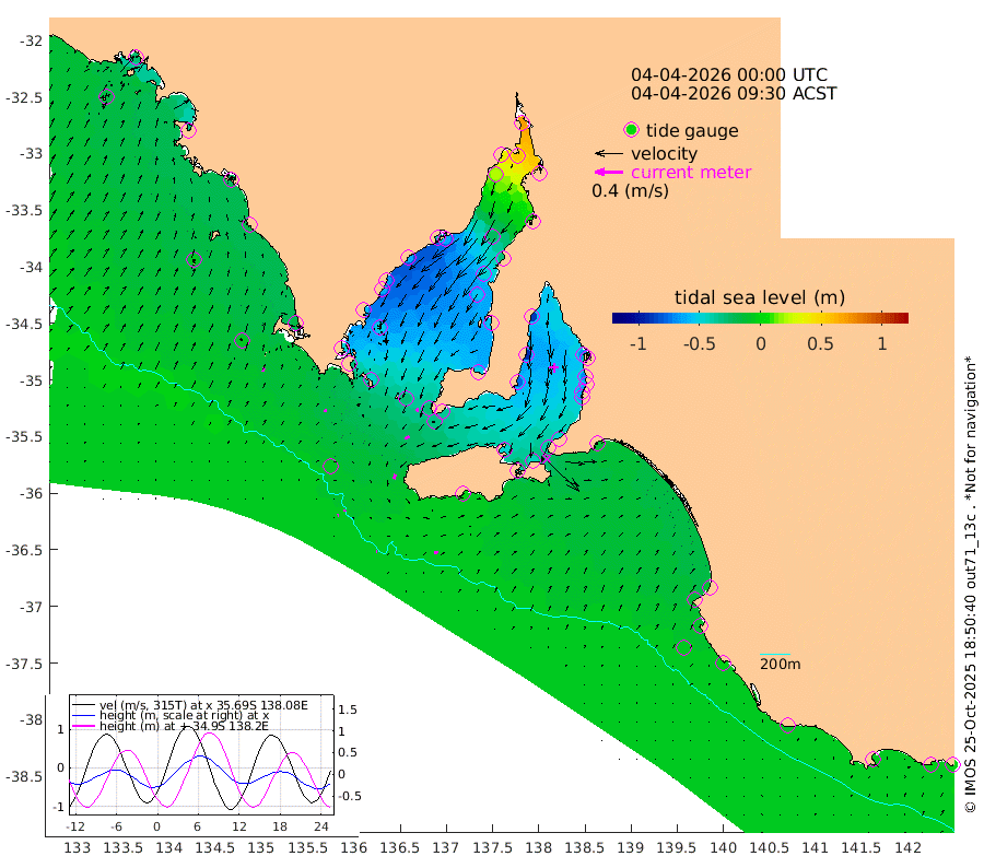 1cm/s 95T +10cm/s rms + 5cm/s 114T. SAM1DS 520m 4cm/s 63T +13cm/s rms + 5cm/s -36T. SAM2CP 100m 2cm/s -165T +21cm/s rms + 18cm/s 142T. SAM3MS 168m 5cm/s 76T +22cm/s rms + 0cm/s -30T. SAM4CY 117m 5cm/s 27T +23cm/s rms + 2cm/s 99T. SAM5CB 94m 7cm/s -116T +8cm/s rms + 3cm/s -172T. SAM6IS 83m 1cm/s -108T +11cm/s rms + 7cm/s 150T. SAM7DS 519m 5cm/s -160T +10cm/s rms + 2cm/s 87T. SAM8SG 47m 7cm/s -165T +20cm/s rms + 12cm/s -168T. NRSKAI 101m -3cm Warrnambool -3cm Port Fairy -4cm Portland -11cm Port Macdonnell -3cm Beachport -5cm Cape Rabelais (off) -9cm Robe -13cm Cape Jaffa -11cm Kingston -13cm Victor Harbor -1cm Vivonne Bay -48cm Kingscote -41cm American River -45cm Penneshaw -38cm Cape Jervis -46cm Second Valley -61cm Port Noarlunga -65cm Port Stanvac -64cm Brighton -68cm Glenelg -71cm Port Adelaide (Outer Harbor) -37cm Angus Inlet (Garden Island) -89cm Ardrossan -91cm Port Vincent -78cm Port Giles -34cm Stenhouse Bay -33cm Althorpe Island -27cm Pondalowie Bay -51cm Point Turton -53cm Port Victoria -53cm Cape Elizabeth -45cm Tiparra Reef Light -27cm Wallaroo -25cm Middle Bank 5cm Port Broughton 61cm Port Pirie 70cm Red Cliff Point (Beacon 5) 54cm Port Bonython 35cm Whyalla 19cm Western Shoal Beacon -44cm Franklin Harbor -61cm Franklin Harbor Entrance Beacon -61cm Arno Bay -67cm Port Neill -62cm Cape Hardy -59cm Tumby Bay -50cm Reevesby Island -48cm Port Lincoln -30cm Taylors Landing -47cm Whalers Bay -29cm Wedge Island Mooring -5cm Shelf Edge Mooring -17cm Coffin Bay Entrance Beacon -7cm Greenly Island -17cm Elliston -7cm Pearson Island -23cm Venus Bay -33cm Blanche Port (Streaky Bay) -27cm Thevenard -16cm St Francis Island