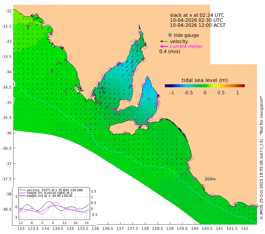 1cm/s 107T +10cm/s rms + 5cm/s 114T. SAM1DS 520m 6cm/s 53T +13cm/s rms + 5cm/s -36T. SAM2CP 100m 4cm/s 58T +21cm/s rms + 18cm/s 142T. SAM3MS 168m 9cm/s 84T +22cm/s rms + 0cm/s -30T. SAM4CY 117m 3cm/s 15T +23cm/s rms + 2cm/s 99T. SAM5CB 94m 4cm/s 23T +8cm/s rms + 3cm/s -172T. SAM6IS 83m 2cm/s 39T +11cm/s rms + 7cm/s 150T. SAM7DS 519m 12cm/s 41T +10cm/s rms + 2cm/s 87T. SAM8SG 47m 6cm/s 18T +20cm/s rms + 12cm/s -168T. NRSKAI 101m -6cm Warrnambool -4cm Port Fairy -5cm Portland -7cm Port Macdonnell -4cm Beachport -4cm Cape Rabelais (off) -5cm Robe -7cm Cape Jaffa -7cm Kingston -5cm Victor Harbor 4cm Vivonne Bay -35cm Kingscote -32cm American River -26cm Penneshaw -27cm Cape Jervis -38cm Second Valley -45cm Port Noarlunga -48cm Port Stanvac -50cm Brighton -53cm Glenelg -55cm Port Adelaide (Outer Harbor) -54cm Angus Inlet (Garden Island) -62cm Ardrossan -57cm Port Vincent -49cm Port Giles -16cm Stenhouse Bay -18cm Althorpe Island -15cm Pondalowie Bay -31cm Point Turton -31cm Port Victoria -34cm Cape Elizabeth -36cm Tiparra Reef Light -41cm Wallaroo -43cm Middle Bank -38cm Port Broughton -43cm Port Pirie -43cm Red Cliff Point (Beacon 5) -47cm Port Bonython -47cm Whyalla -43cm Western Shoal Beacon -47cm Franklin Harbor -38cm Franklin Harbor Entrance Beacon -30cm Arno Bay -33cm Port Neill -21cm Cape Hardy -18cm Tumby Bay -15cm Reevesby Island -13cm Port Lincoln -7cm Taylors Landing -22cm Whalers Bay -13cm Wedge Island Mooring -2cm Shelf Edge Mooring -1cm Coffin Bay Entrance Beacon 4cm Greenly Island 2cm Elliston 5cm Pearson Island -5cm Venus Bay 4cm Blanche Port (Streaky Bay) 8cm Thevenard 13cm St Francis Island