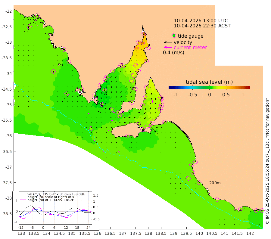 1cm/s -100T +10cm/s rms + 5cm/s 114T. SAM1DS 520m 4cm/s -124T +13cm/s rms + 5cm/s -36T. SAM2CP 100m 6cm/s -113T +21cm/s rms + 18cm/s 142T. SAM3MS 168m 9cm/s -74T +22cm/s rms + 0cm/s -30T. SAM4CY 117m 1cm/s -51T +23cm/s rms + 2cm/s 99T. SAM5CB 94m 8cm/s -117T +8cm/s rms + 3cm/s -172T. SAM6IS 83m 3cm/s -118T +11cm/s rms + 7cm/s 150T. SAM7DS 519m 9cm/s -83T +10cm/s rms + 2cm/s 87T. SAM8SG 47m 4cm/s -150T +20cm/s rms + 12cm/s -168T. NRSKAI 101m 14cm Warrnambool 16cm Port Fairy 16cm Portland 17cm Port Macdonnell 15cm Beachport 17cm Cape Rabelais (off) 15cm Robe 18cm Cape Jaffa 18cm Kingston 17cm Victor Harbor 12cm Vivonne Bay 21cm Kingscote 26cm American River 18cm Penneshaw 21cm Cape Jervis 24cm Second Valley 23cm Port Noarlunga 23cm Port Stanvac 23cm Brighton 23cm Glenelg 24cm Port Adelaide (Outer Harbor) 34cm Angus Inlet (Garden Island) 24cm Ardrossan 30cm Port Vincent 17cm Port Giles 11cm Stenhouse Bay 17cm Althorpe Island 16cm Pondalowie Bay 19cm Point Turton 22cm Port Victoria 28cm Cape Elizabeth 30cm Tiparra Reef Light 43cm Wallaroo 45cm Middle Bank 48cm Port Broughton 84cm Port Pirie 90cm Red Cliff Point (Beacon 5) 79cm Port Bonython 75cm Whyalla 67cm Western Shoal Beacon 35cm Franklin Harbor 24cm Franklin Harbor Entrance Beacon 19cm Arno Bay 17cm Port Neill 18cm Cape Hardy 16cm Tumby Bay 18cm Reevesby Island 12cm Port Lincoln 12cm Taylors Landing 17cm Whalers Bay 16cm Wedge Island Mooring 16cm Shelf Edge Mooring 18cm Coffin Bay Entrance Beacon 14cm Greenly Island 15cm Elliston 18cm Pearson Island 16cm Venus Bay 19cm Blanche Port (Streaky Bay) 16cm Thevenard 19cm St Francis Island