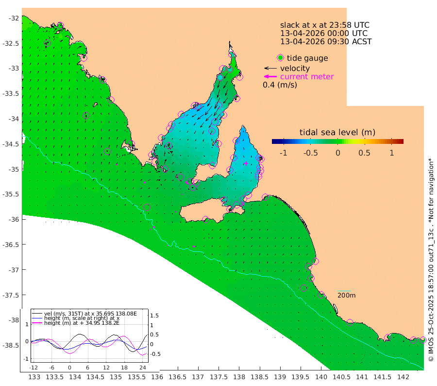 1cm/s 111T +10cm/s rms + 5cm/s 114T. SAM1DS 520m 5cm/s 62T +13cm/s rms + 5cm/s -36T. SAM2CP 100m 5cm/s 115T +21cm/s rms + 18cm/s 142T. SAM3MS 168m 7cm/s 122T +22cm/s rms + 0cm/s -30T. SAM4CY 117m 4cm/s 14T +23cm/s rms + 2cm/s 99T. SAM5CB 94m 2cm/s 143T +8cm/s rms + 3cm/s -172T. SAM6IS 83m 2cm/s 121T +11cm/s rms + 7cm/s 150T. SAM7DS 519m 10cm/s 143T +10cm/s rms + 2cm/s 87T. SAM8SG 47m 4cm/s 173T +20cm/s rms + 12cm/s -168T. NRSKAI 101m -15cm Warrnambool -13cm Port Fairy -12cm Portland -11cm Port Macdonnell -9cm Beachport -10cm Cape Rabelais (off) -11cm Robe -12cm Cape Jaffa -11cm Kingston -12cm Victor Harbor -3cm Vivonne Bay -38cm Kingscote -33cm American River -33cm Penneshaw -34cm Cape Jervis -42cm Second Valley -51cm Port Noarlunga -54cm Port Stanvac -53cm Brighton -56cm Glenelg -60cm Port Adelaide (Outer Harbor) -55cm Angus Inlet (Garden Island) -70cm Ardrossan -52cm Port Vincent -54cm Port Giles -19cm Stenhouse Bay -21cm Althorpe Island -16cm Pondalowie Bay -36cm Point Turton -38cm Port Victoria -41cm Cape Elizabeth -44cm Tiparra Reef Light -46cm Wallaroo -51cm Middle Bank -15cm Port Broughton -35cm Port Pirie -40cm Red Cliff Point (Beacon 5) -39cm Port Bonython -47cm Whyalla -47cm Western Shoal Beacon -46cm Franklin Harbor -51cm Franklin Harbor Entrance Beacon -44cm Arno Bay -45cm Port Neill -41cm Cape Hardy -36cm Tumby Bay -29cm Reevesby Island -25cm Port Lincoln -15cm Taylors Landing -29cm Whalers Bay -18cm Wedge Island Mooring -6cm Shelf Edge Mooring -6cm Coffin Bay Entrance Beacon -4cm Greenly Island -4cm Elliston 2cm Pearson Island -7cm Venus Bay -1cm Blanche Port (Streaky Bay) 2cm Thevenard 4cm St Francis Island