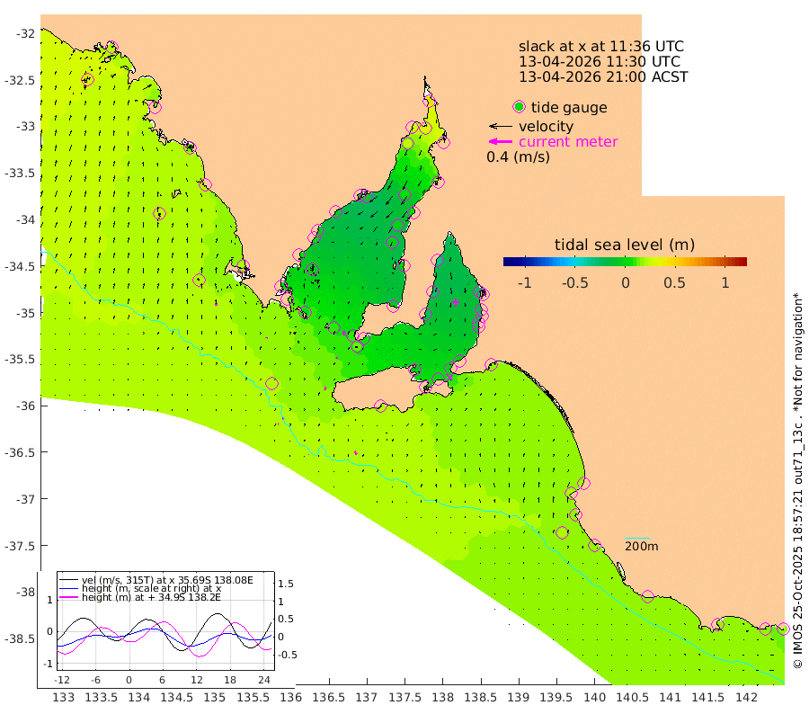 0cm/s -62T +10cm/s rms + 5cm/s 114T. SAM1DS 520m 2cm/s 38T +13cm/s rms + 5cm/s -36T. SAM2CP 100m 2cm/s -66T +21cm/s rms + 18cm/s 142T. SAM3MS 168m 6cm/s -34T +22cm/s rms + 0cm/s -30T. SAM4CY 117m 4cm/s 5T +23cm/s rms + 2cm/s 99T. SAM5CB 94m 3cm/s 13T +8cm/s rms + 3cm/s -172T. SAM6IS 83m 1cm/s -74T +11cm/s rms + 7cm/s 150T. SAM7DS 519m 7cm/s 1T +10cm/s rms + 2cm/s 87T. SAM8SG 47m 5cm/s 5T +20cm/s rms + 12cm/s -168T. NRSKAI 101m 15cm Warrnambool 16cm Port Fairy 17cm Portland 16cm Port Macdonnell 19cm Beachport 20cm Cape Rabelais (off) 17cm Robe 20cm Cape Jaffa 19cm Kingston 19cm Victor Harbor 20cm Vivonne Bay -7cm Kingscote -1cm American River 1cm Penneshaw -2cm Cape Jervis -5cm Second Valley -20cm Port Noarlunga -21cm Port Stanvac -19cm Brighton -20cm Glenelg -26cm Port Adelaide (Outer Harbor) -19cm Angus Inlet (Garden Island) -36cm Ardrossan -28cm Port Vincent -23cm Port Giles 6cm Stenhouse Bay 12cm Althorpe Island 8cm Pondalowie Bay -5cm Point Turton -3cm Port Victoria -3cm Cape Elizabeth -1cm Tiparra Reef Light 6cm Wallaroo 6cm Middle Bank 23cm Port Broughton 42cm Port Pirie 48cm Red Cliff Point (Beacon 5) 30cm Port Bonython 28cm Whyalla 24cm Western Shoal Beacon -7cm Franklin Harbor -6cm Franklin Harbor Entrance Beacon -4cm Arno Bay -3cm Port Neill 0cm Cape Hardy 4cm Tumby Bay 0cm Reevesby Island 5cm Port Lincoln 12cm Taylors Landing 3cm Whalers Bay 11cm Wedge Island Mooring 20cm Shelf Edge Mooring 19cm Coffin Bay Entrance Beacon 20cm Greenly Island 23cm Elliston 25cm Pearson Island 13cm Venus Bay 22cm Blanche Port (Streaky Bay) 22cm Thevenard 27cm St Francis Island