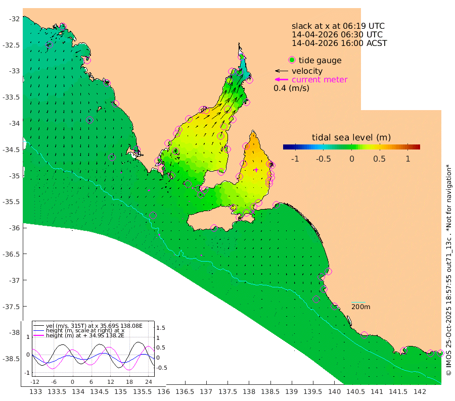 1cm/s 128T +10cm/s rms + 5cm/s 114T. SAM1DS 520m 5cm/s -112T +13cm/s rms + 5cm/s -36T. SAM2CP 100m 4cm/s -32T +21cm/s rms + 18cm/s 142T. SAM3MS 168m 3cm/s 69T +22cm/s rms + 0cm/s -30T. SAM4CY 117m 4cm/s -172T +23cm/s rms + 2cm/s 99T. SAM5CB 94m 1cm/s -8T +8cm/s rms + 3cm/s -172T. SAM6IS 83m 2cm/s -4T +11cm/s rms + 7cm/s 150T. SAM7DS 519m 4cm/s -51T +10cm/s rms + 2cm/s 87T. SAM8SG 47m 1cm/s -55T +20cm/s rms + 12cm/s -168T. NRSKAI 101m -10cm Warrnambool -11cm Port Fairy -12cm Portland -13cm Port Macdonnell -14cm Beachport -16cm Cape Rabelais (off) -14cm Robe -14cm Cape Jaffa -15cm Kingston -11cm Victor Harbor -16cm Vivonne Bay 28cm Kingscote 20cm American River 18cm Penneshaw 22cm Cape Jervis 36cm Second Valley 49cm Port Noarlunga 52cm Port Stanvac 52cm Brighton 53cm Glenelg 62cm Port Adelaide (Outer Harbor) 56cm Angus Inlet (Garden Island) 77cm Ardrossan 54cm Port Vincent 51cm Port Giles 0cm Stenhouse Bay -1cm Althorpe Island -6cm Pondalowie Bay 15cm Point Turton 14cm Port Victoria 19cm Cape Elizabeth 19cm Tiparra Reef Light 19cm Wallaroo 25cm Middle Bank -23cm Port Broughton -1cm Port Pirie 9cm Red Cliff Point (Beacon 5) 4cm Port Bonython 16cm Whyalla 21cm Western Shoal Beacon 33cm Franklin Harbor 34cm Franklin Harbor Entrance Beacon 23cm Arno Bay 20cm Port Neill 17cm Cape Hardy 12cm Tumby Bay 9cm Reevesby Island 3cm Port Lincoln -7cm Taylors Landing 8cm Whalers Bay -5cm Wedge Island Mooring -16cm Shelf Edge Mooring -19cm Coffin Bay Entrance Beacon -18cm Greenly Island -22cm Elliston -31cm Pearson Island -15cm Venus Bay -30cm Blanche Port (Streaky Bay) -31cm Thevenard -33cm St Francis Island