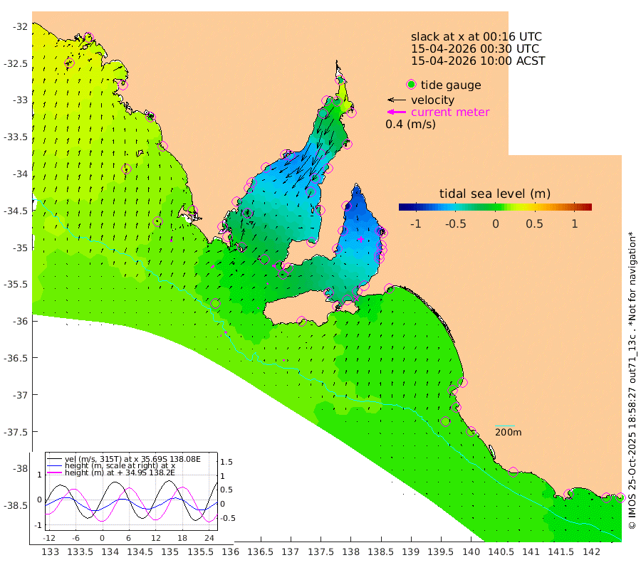 1cm/s 115T +10cm/s rms + 5cm/s 114T. SAM1DS 520m 8cm/s 56T +13cm/s rms + 5cm/s -36T. SAM2CP 100m 5cm/s 117T +21cm/s rms + 18cm/s 142T. SAM3MS 168m 4cm/s 114T +22cm/s rms + 0cm/s -30T. SAM4CY 117m 6cm/s 5T +23cm/s rms + 2cm/s 99T. SAM5CB 94m 3cm/s 68T +8cm/s rms + 3cm/s -172T. SAM6IS 83m 1cm/s 122T +11cm/s rms + 7cm/s 150T. SAM7DS 519m 7cm/s 99T +10cm/s rms + 2cm/s 87T. SAM8SG 47m 2cm/s 44T +20cm/s rms + 12cm/s -168T. NRSKAI 101m 9cm Warrnambool 9cm Port Fairy 10cm Portland 9cm Port Macdonnell 12cm Beachport 12cm Cape Rabelais (off) 11cm Robe 9cm Cape Jaffa 11cm Kingston 7cm Victor Harbor 17cm Vivonne Bay -43cm Kingscote -36cm American River -32cm Penneshaw -36cm Cape Jervis -52cm Second Valley -68cm Port Noarlunga -72cm Port Stanvac -73cm Brighton -76cm Glenelg -85cm Port Adelaide (Outer Harbor) -77cm Angus Inlet (Garden Island) -104cm Ardrossan -78cm Port Vincent -72cm Port Giles -8cm Stenhouse Bay -8cm Althorpe Island -3cm Pondalowie Bay -27cm Point Turton -32cm Port Victoria -37cm Cape Elizabeth -34cm Tiparra Reef Light -37cm Wallaroo -44cm Middle Bank 0cm Port Broughton -15cm Port Pirie -26cm Red Cliff Point (Beacon 5) -20cm Port Bonython -34cm Whyalla -36cm Western Shoal Beacon -49cm Franklin Harbor -49cm Franklin Harbor Entrance Beacon -38cm Arno Bay -35cm Port Neill -31cm Cape Hardy -25cm Tumby Bay -16cm Reevesby Island -11cm Port Lincoln 2cm Taylors Landing -20cm Whalers Bay -3cm Wedge Island Mooring 14cm Shelf Edge Mooring 16cm Coffin Bay Entrance Beacon 16cm Greenly Island 18cm Elliston 25cm Pearson Island 10cm Venus Bay 25cm Blanche Port (Streaky Bay) 28cm Thevenard 29cm St Francis Island