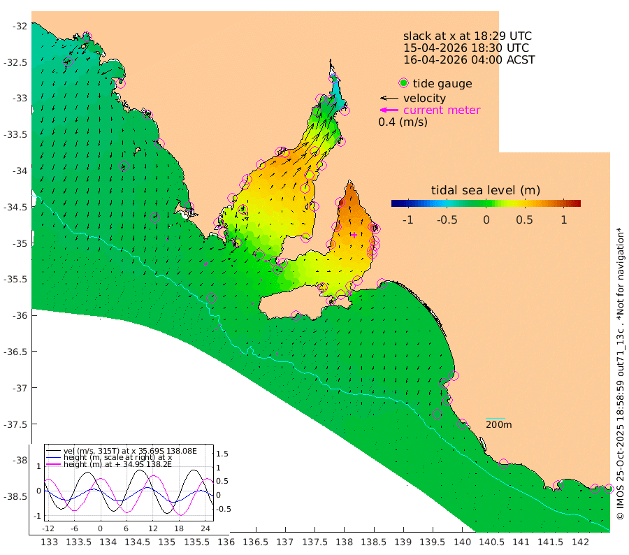 0cm/s -24T +10cm/s rms + 5cm/s 114T. SAM1DS 520m 6cm/s -130T +13cm/s rms + 5cm/s -36T. SAM2CP 100m 3cm/s -57T +21cm/s rms + 18cm/s 142T. SAM3MS 168m 3cm/s -135T +22cm/s rms + 0cm/s -30T. SAM4CY 117m 6cm/s -171T +23cm/s rms + 2cm/s 99T. SAM5CB 94m 3cm/s -149T +8cm/s rms + 3cm/s -172T. SAM6IS 83m 1cm/s -37T +11cm/s rms + 7cm/s 150T. SAM7DS 519m 5cm/s -97T +10cm/s rms + 2cm/s 87T. SAM8SG 47m 3cm/s -158T +20cm/s rms + 12cm/s -168T. NRSKAI 101m -15cm Warrnambool -14cm Port Fairy -15cm Portland -13cm Port Macdonnell -16cm Beachport -15cm Cape Rabelais (off) -14cm Robe -15cm Cape Jaffa -17cm Kingston -12cm Victor Harbor -19cm Vivonne Bay 44cm Kingscote 34cm American River 29cm Penneshaw 34cm Cape Jervis 47cm Second Valley 70cm Port Noarlunga 74cm Port Stanvac 75cm Brighton 78cm Glenelg 87cm Port Adelaide (Outer Harbor) 79cm Angus Inlet (Garden Island) 110cm Ardrossan 86cm Port Vincent 75cm Port Giles 9cm Stenhouse Bay 5cm Althorpe Island 3cm Pondalowie Bay 26cm Point Turton 31cm Port Victoria 31cm Cape Elizabeth 28cm Tiparra Reef Light 26cm Wallaroo 31cm Middle Bank -10cm Port Broughton -15cm Port Pirie -16cm Red Cliff Point (Beacon 5) 3cm Port Bonython 9cm Whyalla 9cm Western Shoal Beacon 36cm Franklin Harbor 41cm Franklin Harbor Entrance Beacon 36cm Arno Bay 34cm Port Neill 28cm Cape Hardy 22cm Tumby Bay 16cm Reevesby Island 11cm Port Lincoln -2cm Taylors Landing 19cm Whalers Bay 2cm Wedge Island Mooring -16cm Shelf Edge Mooring -18cm Coffin Bay Entrance Beacon -18cm Greenly Island -20cm Elliston -21cm Pearson Island -11cm Venus Bay -24cm Blanche Port (Streaky Bay) -26cm Thevenard -26cm St Francis Island