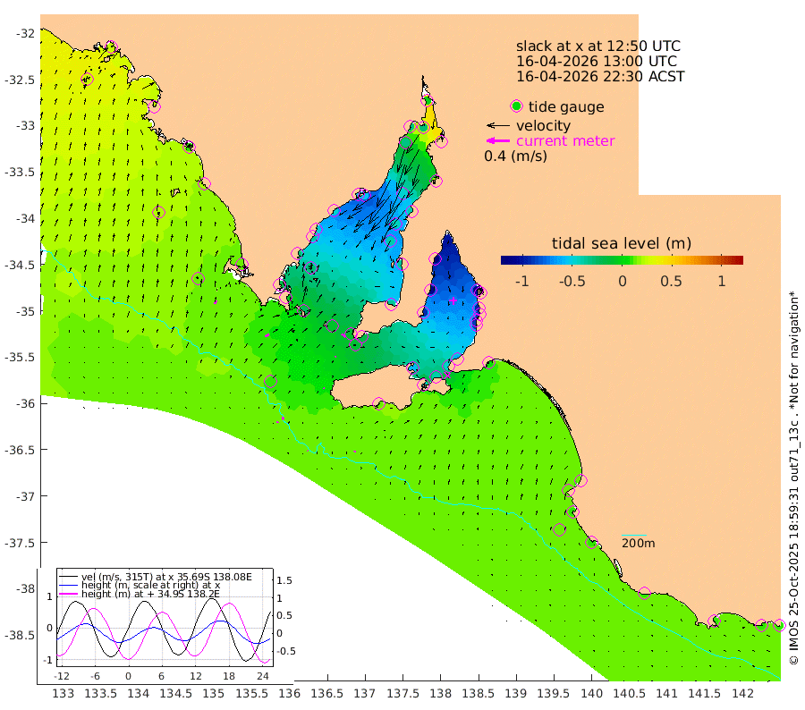 1cm/s -75T +10cm/s rms + 5cm/s 114T. SAM1DS 520m 7cm/s 67T +13cm/s rms + 5cm/s -36T. SAM2CP 100m 5cm/s 145T +21cm/s rms + 18cm/s 142T. SAM3MS 168m 2cm/s -12T +22cm/s rms + 0cm/s -30T. SAM4CY 117m 6cm/s 18T +23cm/s rms + 2cm/s 99T. SAM5CB 94m 1cm/s 80T +8cm/s rms + 3cm/s -172T. SAM6IS 83m 2cm/s 166T +11cm/s rms + 7cm/s 150T. SAM7DS 519m 8cm/s 129T +10cm/s rms + 2cm/s 87T. SAM8SG 47m 1cm/s 113T +20cm/s rms + 12cm/s -168T. NRSKAI 101m 9cm Warrnambool 10cm Port Fairy 10cm Portland 9cm Port Macdonnell 11cm Beachport 12cm Cape Rabelais (off) 11cm Robe 14cm Cape Jaffa 14cm Kingston 7cm Victor Harbor 13cm Vivonne Bay -57cm Kingscote -46cm American River -39cm Penneshaw -45cm Cape Jervis -63cm Second Valley -89cm Port Noarlunga -93cm Port Stanvac -94cm Brighton -97cm Glenelg -108cm Port Adelaide (Outer Harbor) -103cm Angus Inlet (Garden Island) -135cm Ardrossan -108cm Port Vincent -93cm Port Giles -16cm Stenhouse Bay -12cm Althorpe Island -8cm Pondalowie Bay -36cm Point Turton -35cm Port Victoria -38cm Cape Elizabeth -41cm Tiparra Reef Light -39cm Wallaroo -46cm Middle Bank 17cm Port Broughton -3cm Port Pirie -2cm Red Cliff Point (Beacon 5) -27cm Port Bonython -30cm Whyalla -31cm Western Shoal Beacon -51cm Franklin Harbor -56cm Franklin Harbor Entrance Beacon -48cm Arno Bay -48cm Port Neill -37cm Cape Hardy -29cm Tumby Bay -29cm Reevesby Island -19cm Port Lincoln -4cm Taylors Landing -25cm Whalers Bay -8cm Wedge Island Mooring 11cm Shelf Edge Mooring 14cm Coffin Bay Entrance Beacon 15cm Greenly Island 19cm Elliston 19cm Pearson Island 8cm Venus Bay 24cm Blanche Port (Streaky Bay) 26cm Thevenard 24cm St Francis Island