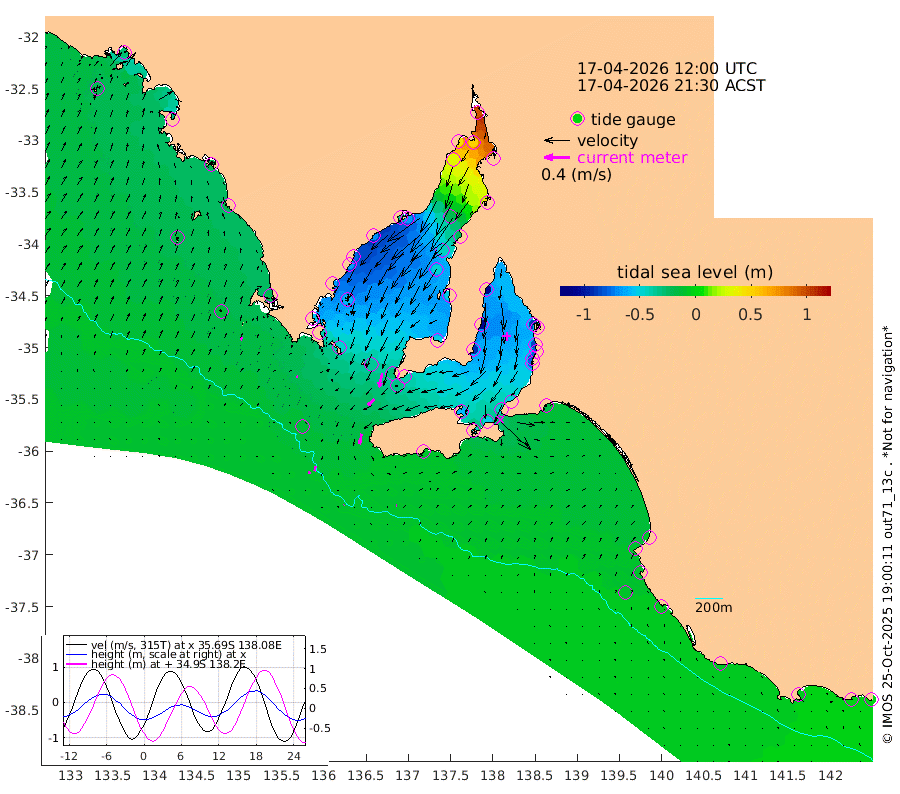 1cm/s -101T +10cm/s rms + 5cm/s 114T. SAM1DS 520m 3cm/s 119T +13cm/s rms + 5cm/s -36T. SAM2CP 100m 8cm/s -169T +21cm/s rms + 18cm/s 142T. SAM3MS 168m 1cm/s -60T +22cm/s rms + 0cm/s -30T. SAM4CY 117m 5cm/s 39T +23cm/s rms + 2cm/s 99T. SAM5CB 94m 14cm/s -132T +8cm/s rms + 3cm/s -172T. SAM6IS 83m 4cm/s -158T +11cm/s rms + 7cm/s 150T. SAM7DS 519m 22cm/s -167T +10cm/s rms + 2cm/s 87T. SAM8SG 47m 16cm/s -167T +20cm/s rms + 12cm/s -168T. NRSKAI 101m -3cm Warrnambool -3cm Port Fairy -5cm Portland -9cm Port Macdonnell -7cm Beachport -8cm Cape Rabelais (off) -9cm Robe -8cm Cape Jaffa -7cm Kingston -15cm Victor Harbor -9cm Vivonne Bay -59cm Kingscote -45cm American River -50cm Penneshaw -45cm Cape Jervis -52cm Second Valley -76cm Port Noarlunga -79cm Port Stanvac -79cm Brighton -83cm Glenelg -87cm Port Adelaide (Outer Harbor) -59cm Angus Inlet (Garden Island) -111cm Ardrossan -107cm Port Vincent -91cm Port Giles -39cm Stenhouse Bay -33cm Althorpe Island -29cm Pondalowie Bay -52cm Point Turton -52cm Port Victoria -49cm Cape Elizabeth -42cm Tiparra Reef Light -20cm Wallaroo -22cm Middle Bank 45cm Port Broughton 81cm Port Pirie 96cm Red Cliff Point (Beacon 5) 51cm Port Bonython 45cm Whyalla 33cm Western Shoal Beacon -35cm Franklin Harbor -65cm Franklin Harbor Entrance Beacon -70cm Arno Bay -78cm Port Neill -67cm Cape Hardy -64cm Tumby Bay -59cm Reevesby Island -56cm Port Lincoln -39cm Taylors Landing -47cm Whalers Bay -34cm Wedge Island Mooring -12cm Shelf Edge Mooring -20cm Coffin Bay Entrance Beacon -14cm Greenly Island -19cm Elliston -17cm Pearson Island -20cm Venus Bay -31cm Blanche Port (Streaky Bay) -30cm Thevenard -19cm St Francis Island