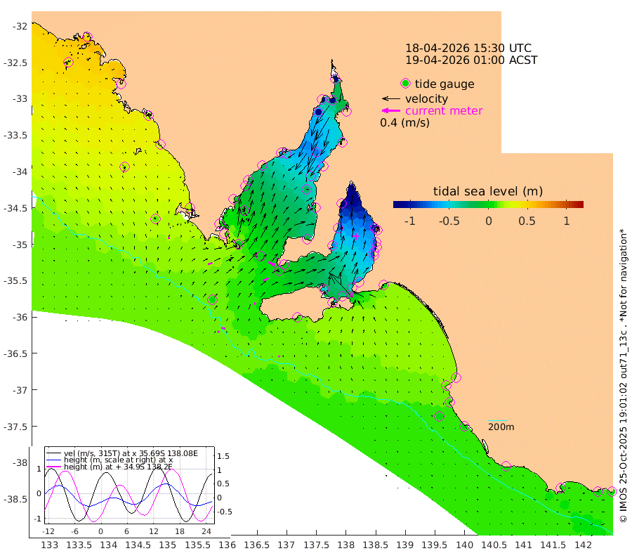 1cm/s -63T +10cm/s rms + 5cm/s 114T. SAM1DS 520m 10cm/s 68T +13cm/s rms + 5cm/s -36T. SAM2CP 100m 9cm/s 110T +21cm/s rms + 18cm/s 142T. SAM3MS 168m 4cm/s 161T +22cm/s rms + 0cm/s -30T. SAM4CY 117m 3cm/s 13T +23cm/s rms + 2cm/s 99T. SAM5CB 94m 12cm/s 67T +8cm/s rms + 3cm/s -172T. SAM6IS 83m 4cm/s 120T +11cm/s rms + 7cm/s 150T. SAM7DS 519m 15cm/s 109T +10cm/s rms + 2cm/s 87T. SAM8SG 47m 6cm/s 37T +20cm/s rms + 12cm/s -168T. NRSKAI 101m 3cm Warrnambool 3cm Port Fairy 4cm Portland 6cm Port Macdonnell 5cm Beachport 7cm Cape Rabelais (off) 9cm Robe 11cm Cape Jaffa 12cm Kingston 4cm Victor Harbor 9cm Vivonne Bay -49cm Kingscote -44cm American River -30cm Penneshaw -43cm Cape Jervis -65cm Second Valley -80cm Port Noarlunga -82cm Port Stanvac -85cm Brighton -85cm Glenelg -98cm Port Adelaide (Outer Harbor) -121cm Angus Inlet (Garden Island) -115cm Ardrossan -76cm Port Vincent -69cm Port Giles -1cm Stenhouse Bay -4cm Althorpe Island 2cm Pondalowie Bay -16cm Point Turton -16cm Port Victoria -24cm Cape Elizabeth -38cm Tiparra Reef Light -60cm Wallaroo -72cm Middle Bank -17cm Port Broughton -115cm Port Pirie -130cm Red Cliff Point (Beacon 5) -124cm Port Bonython -123cm Whyalla -110cm Western Shoal Beacon -55cm Franklin Harbor -42cm Franklin Harbor Entrance Beacon -25cm Arno Bay -17cm Port Neill -12cm Cape Hardy -4cm Tumby Bay -7cm Reevesby Island 6cm Port Lincoln 11cm Taylors Landing -8cm Whalers Bay 3cm Wedge Island Mooring 7cm Shelf Edge Mooring 21cm Coffin Bay Entrance Beacon 14cm Greenly Island 26cm Elliston 22cm Pearson Island 19cm Venus Bay 47cm Blanche Port (Streaky Bay) 46cm Thevenard 30cm St Francis Island