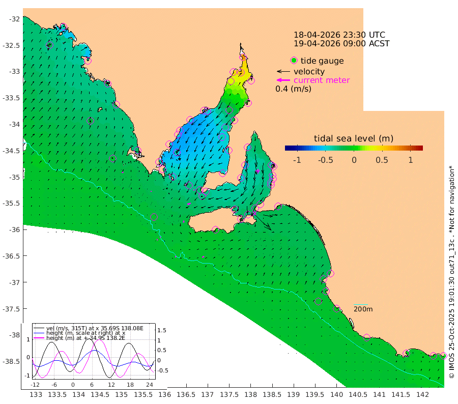 1cm/s 90T +10cm/s rms + 5cm/s 114T. SAM1DS 520m 2cm/s 59T +13cm/s rms + 5cm/s -36T. SAM2CP 100m 2cm/s -79T +21cm/s rms + 18cm/s 142T. SAM3MS 168m 7cm/s 63T +22cm/s rms + 0cm/s -30T. SAM4CY 117m 4cm/s 35T +23cm/s rms + 2cm/s 99T. SAM5CB 94m 10cm/s -114T +8cm/s rms + 3cm/s -172T. SAM6IS 83m 3cm/s -70T +11cm/s rms + 7cm/s 150T. SAM7DS 519m 4cm/s -81T +10cm/s rms + 2cm/s 87T. SAM8SG 47m 5cm/s -158T +20cm/s rms + 12cm/s -168T. NRSKAI 101m -6cm Warrnambool -5cm Port Fairy -6cm Portland -12cm Port Macdonnell -6cm Beachport -8cm Cape Rabelais (off) -12cm Robe -16cm Cape Jaffa -17cm Kingston -14cm Victor Harbor -4cm Vivonne Bay -33cm Kingscote -27cm American River -32cm Penneshaw -24cm Cape Jervis -26cm Second Valley -36cm Port Noarlunga -39cm Port Stanvac -37cm Brighton -43cm Glenelg -40cm Port Adelaide (Outer Harbor) -9cm Angus Inlet (Garden Island) -50cm Ardrossan -66cm Port Vincent -52cm Port Giles -32cm Stenhouse Bay -32cm Althorpe Island -28cm Pondalowie Bay -47cm Point Turton -46cm Port Victoria -45cm Cape Elizabeth -37cm Tiparra Reef Light -17cm Wallaroo -11cm Middle Bank -4cm Port Broughton 66cm Port Pirie 78cm Red Cliff Point (Beacon 5) 59cm Port Bonython 48cm Whyalla 32cm Western Shoal Beacon -33cm Franklin Harbor -48cm Franklin Harbor Entrance Beacon -51cm Arno Bay -62cm Port Neill -52cm Cape Hardy -51cm Tumby Bay -45cm Reevesby Island -45cm Port Lincoln -31cm Taylors Landing -42cm Whalers Bay -30cm Wedge Island Mooring -9cm Shelf Edge Mooring -25cm Coffin Bay Entrance Beacon -10cm Greenly Island -23cm Elliston -13cm Pearson Island -29cm Venus Bay -45cm Blanche Port (Streaky Bay) -39cm Thevenard -18cm St Francis Island