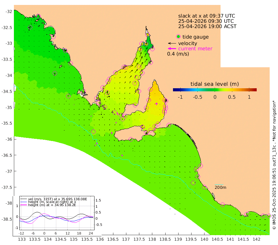 0cm/s -32T +10cm/s rms + 5cm/s 114T. SAM1DS 520m 3cm/s -86T +13cm/s rms + 5cm/s -36T. SAM2CP 100m 7cm/s -49T +21cm/s rms + 18cm/s 142T. SAM3MS 168m 7cm/s -38T +22cm/s rms + 0cm/s -30T. SAM4CY 117m 1cm/s -82T +23cm/s rms + 2cm/s 99T. SAM5CB 94m 6cm/s 29T +8cm/s rms + 3cm/s -172T. SAM6IS 83m 3cm/s -44T +11cm/s rms + 7cm/s 150T. SAM7DS 519m 13cm/s -14T +10cm/s rms + 2cm/s 87T. SAM8SG 47m 9cm/s 2T +20cm/s rms + 12cm/s -168T. NRSKAI 101m 13cm Warrnambool 14cm Port Fairy 14cm Portland 16cm Port Macdonnell 16cm Beachport 15cm Cape Rabelais (off) 13cm Robe 17cm Cape Jaffa 16cm Kingston 19cm Victor Harbor 13cm Vivonne Bay 34cm Kingscote 31cm American River 31cm Penneshaw 29cm Cape Jervis 40cm Second Valley 41cm Port Noarlunga 41cm Port Stanvac 43cm Brighton 44cm Glenelg 46cm Port Adelaide (Outer Harbor) 44cm Angus Inlet (Garden Island) 52cm Ardrossan 48cm Port Vincent 41cm Port Giles 19cm Stenhouse Bay 21cm Althorpe Island 16cm Pondalowie Bay 23cm Point Turton 23cm Port Victoria 31cm Cape Elizabeth 28cm Tiparra Reef Light 33cm Wallaroo 39cm Middle Bank 10cm Port Broughton 42cm Port Pirie 51cm Red Cliff Point (Beacon 5) 44cm Port Bonython 47cm Whyalla 43cm Western Shoal Beacon 37cm Franklin Harbor 39cm Franklin Harbor Entrance Beacon 31cm Arno Bay 33cm Port Neill 29cm Cape Hardy 28cm Tumby Bay 21cm Reevesby Island 21cm Port Lincoln 19cm Taylors Landing 21cm Whalers Bay 20cm Wedge Island Mooring 16cm Shelf Edge Mooring 13cm Coffin Bay Entrance Beacon 13cm Greenly Island 13cm Elliston 11cm Pearson Island 9cm Venus Bay 7cm Blanche Port (Streaky Bay) 5cm Thevenard 2cm St Francis Island