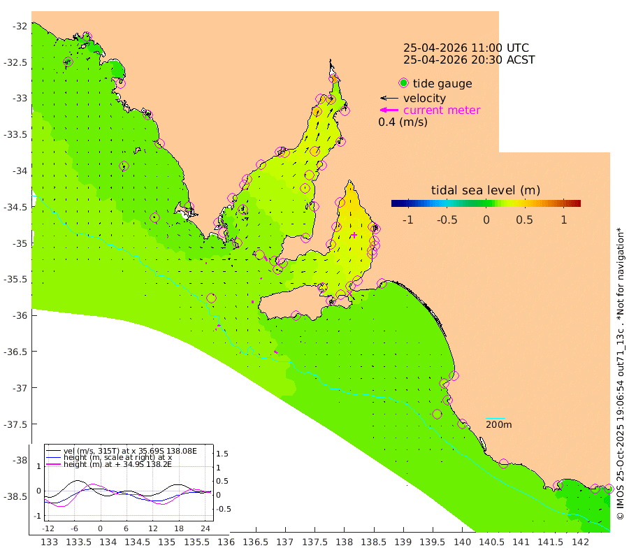 1cm/s -60T +10cm/s rms + 5cm/s 114T. SAM1DS 520m 3cm/s -98T +13cm/s rms + 5cm/s -36T. SAM2CP 100m 6cm/s -73T +21cm/s rms + 18cm/s 142T. SAM3MS 168m 8cm/s -52T +22cm/s rms + 0cm/s -30T. SAM4CY 117m 1cm/s -42T +23cm/s rms + 2cm/s 99T. SAM5CB 94m 3cm/s -50T +8cm/s rms + 3cm/s -172T. SAM6IS 83m 3cm/s -73T +11cm/s rms + 7cm/s 150T. SAM7DS 519m 11cm/s -27T +10cm/s rms + 2cm/s 87T. SAM8SG 47m 5cm/s -5T +20cm/s rms + 12cm/s -168T. NRSKAI 101m 11cm Warrnambool 13cm Port Fairy 14cm Portland 17cm Port Macdonnell 16cm Beachport 17cm Cape Rabelais (off) 15cm Robe 19cm Cape Jaffa 17cm Kingston 20cm Victor Harbor 15cm Vivonne Bay 31cm Kingscote 31cm American River 28cm Penneshaw 28cm Cape Jervis 37cm Second Valley 36cm Port Noarlunga 36cm Port Stanvac 38cm Brighton 39cm Glenelg 40cm Port Adelaide (Outer Harbor) 43cm Angus Inlet (Garden Island) 43cm Ardrossan 45cm Port Vincent 34cm Port Giles 17cm Stenhouse Bay 21cm Althorpe Island 18cm Pondalowie Bay 22cm Point Turton 24cm Port Victoria 31cm Cape Elizabeth 28cm Tiparra Reef Light 37cm Wallaroo 42cm Middle Bank 27cm Port Broughton 60cm Port Pirie 68cm Red Cliff Point (Beacon 5) 58cm Port Bonython 59cm Whyalla 54cm Western Shoal Beacon 36cm Franklin Harbor 34cm Franklin Harbor Entrance Beacon 28cm Arno Bay 26cm Port Neill 26cm Cape Hardy 25cm Tumby Bay 21cm Reevesby Island 19cm Port Lincoln 19cm Taylors Landing 21cm Whalers Bay 21cm Wedge Island Mooring 19cm Shelf Edge Mooring 18cm Coffin Bay Entrance Beacon 17cm Greenly Island 19cm Elliston 18cm Pearson Island 14cm Venus Bay 17cm Blanche Port (Streaky Bay) 15cm Thevenard 9cm St Francis Island