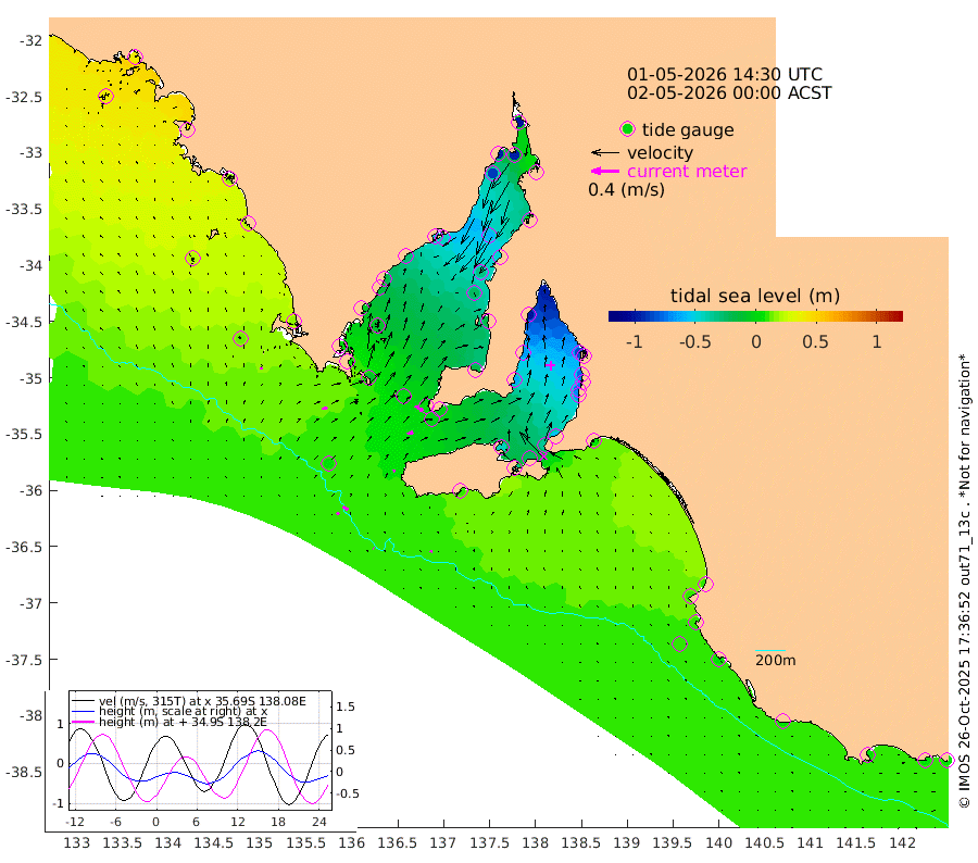 1cm/s -68T +10cm/s rms + 5cm/s 114T. SAM1DS 520m 8cm/s 75T +13cm/s rms + 5cm/s -36T. SAM2CP 100m 8cm/s 120T +21cm/s rms + 18cm/s 142T. SAM3MS 168m 4cm/s -171T +22cm/s rms + 0cm/s -30T. SAM4CY 117m 3cm/s 12T +23cm/s rms + 2cm/s 99T. SAM5CB 94m 9cm/s 75T +8cm/s rms + 3cm/s -172T. SAM6IS 83m 4cm/s 130T +11cm/s rms + 7cm/s 150T. SAM7DS 519m 13cm/s 124T +10cm/s rms + 2cm/s 87T. SAM8SG 47m 3cm/s 63T +20cm/s rms + 12cm/s -168T. NRSKAI 101m 4cm Warrnambool 4cm Port Fairy 5cm Portland 6cm Port Macdonnell 5cm Beachport 8cm Cape Rabelais (off) 9cm Robe 10cm Cape Jaffa 11cm Kingston 4cm Victor Harbor 8cm Vivonne Bay -43cm Kingscote -36cm American River -26cm Penneshaw -37cm Cape Jervis -56cm Second Valley -70cm Port Noarlunga -72cm Port Stanvac -74cm Brighton -75cm Glenelg -86cm Port Adelaide (Outer Harbor) -103cm Angus Inlet (Garden Island) -101cm Ardrossan -67cm Port Vincent -62cm Port Giles -2cm Stenhouse Bay -2cm Althorpe Island 1cm Pondalowie Bay -17cm Point Turton -16cm Port Victoria -23cm Cape Elizabeth -32cm Tiparra Reef Light -48cm Wallaroo -60cm Middle Bank -3cm Port Broughton -85cm Port Pirie -98cm Red Cliff Point (Beacon 5) -94cm Port Bonython -96cm Whyalla -86cm Western Shoal Beacon -51cm Franklin Harbor -42cm Franklin Harbor Entrance Beacon -26cm Arno Bay -18cm Port Neill -12cm Cape Hardy -6cm Tumby Bay -9cm Reevesby Island 2cm Port Lincoln 6cm Taylors Landing -8cm Whalers Bay 0cm Wedge Island Mooring 6cm Shelf Edge Mooring 16cm Coffin Bay Entrance Beacon 12cm Greenly Island 21cm Elliston 22cm Pearson Island 16cm Venus Bay 40cm Blanche Port (Streaky Bay) 38cm Thevenard 38cm St Francis Island