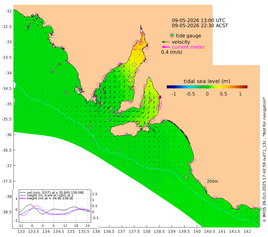1cm/s -95T +10cm/s rms + 5cm/s 114T. SAM1DS 520m 5cm/s -135T +13cm/s rms + 5cm/s -36T. SAM2CP 100m 7cm/s -134T +21cm/s rms + 18cm/s 142T. SAM3MS 168m 8cm/s -91T +22cm/s rms + 0cm/s -30T. SAM4CY 117m 1cm/s -154T +23cm/s rms + 2cm/s 99T. SAM5CB 94m 11cm/s -124T +8cm/s rms + 3cm/s -172T. SAM6IS 83m 3cm/s -144T +11cm/s rms + 7cm/s 150T. SAM7DS 519m 11cm/s -121T +10cm/s rms + 2cm/s 87T. SAM8SG 47m 8cm/s -163T +20cm/s rms + 12cm/s -168T. NRSKAI 101m 7cm Warrnambool 8cm Port Fairy 7cm Portland 9cm Port Macdonnell 6cm Beachport 8cm Cape Rabelais (off) 7cm Robe 9cm Cape Jaffa 9cm Kingston 7cm Victor Harbor 2cm Vivonne Bay 16cm Kingscote 20cm American River 12cm Penneshaw 16cm Cape Jervis 19cm Second Valley 21cm Port Noarlunga 22cm Port Stanvac 22cm Brighton 21cm Glenelg 24cm Port Adelaide (Outer Harbor) 33cm Angus Inlet (Garden Island) 25cm Ardrossan 27cm Port Vincent 15cm Port Giles 5cm Stenhouse Bay 10cm Althorpe Island 10cm Pondalowie Bay 15cm Point Turton 18cm Port Victoria 23cm Cape Elizabeth 24cm Tiparra Reef Light 36cm Wallaroo 37cm Middle Bank 48cm Port Broughton 70cm Port Pirie 73cm Red Cliff Point (Beacon 5) 67cm Port Bonython 63cm Whyalla 55cm Western Shoal Beacon 28cm Franklin Harbor 16cm Franklin Harbor Entrance Beacon 12cm Arno Bay 10cm Port Neill 10cm Cape Hardy 8cm Tumby Bay 9cm Reevesby Island 3cm Port Lincoln 2cm Taylors Landing 11cm Whalers Bay 8cm Wedge Island Mooring 6cm Shelf Edge Mooring 6cm Coffin Bay Entrance Beacon 4cm Greenly Island 4cm Elliston 8cm Pearson Island 8cm Venus Bay 7cm Blanche Port (Streaky Bay) 4cm Thevenard 8cm St Francis Island
