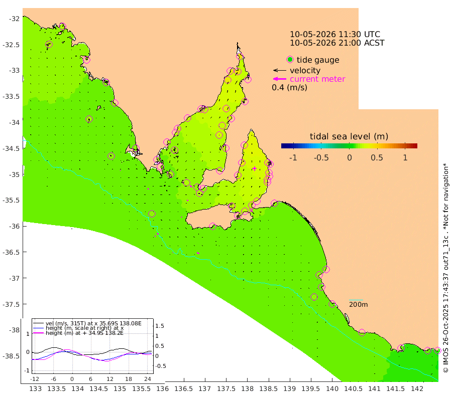 1cm/s -70T +10cm/s rms + 5cm/s 114T. SAM1DS 520m 3cm/s -121T +13cm/s rms + 5cm/s -36T. SAM2CP 100m 4cm/s -101T +21cm/s rms + 18cm/s 142T. SAM3MS 168m 8cm/s -72T +22cm/s rms + 0cm/s -30T. SAM4CY 117m 1cm/s -77T +23cm/s rms + 2cm/s 99T. SAM5CB 94m 4cm/s -108T +8cm/s rms + 3cm/s -172T. SAM6IS 83m 2cm/s -110T +11cm/s rms + 7cm/s 150T. SAM7DS 519m 7cm/s -48T +10cm/s rms + 2cm/s 87T. SAM8SG 47m 1cm/s -28T +20cm/s rms + 12cm/s -168T. NRSKAI 101m 11cm Warrnambool 12cm Port Fairy 13cm Portland 17cm Port Macdonnell 14cm Beachport 16cm Cape Rabelais (off) 14cm Robe 18cm Cape Jaffa 16cm Kingston 17cm Victor Harbor 12cm Vivonne Bay 24cm Kingscote 27cm American River 24cm Penneshaw 23cm Cape Jervis 28cm Second Valley 28cm Port Noarlunga 29cm Port Stanvac 31cm Brighton 31cm Glenelg 31cm Port Adelaide (Outer Harbor) 31cm Angus Inlet (Garden Island) 33cm Ardrossan 38cm Port Vincent 27cm Port Giles 17cm Stenhouse Bay 22cm Althorpe Island 18cm Pondalowie Bay 21cm Point Turton 24cm Port Victoria 27cm Cape Elizabeth 26cm Tiparra Reef Light 31cm Wallaroo 32cm Middle Bank 33cm Port Broughton 43cm Port Pirie 48cm Red Cliff Point (Beacon 5) 43cm Port Bonython 42cm Whyalla 39cm Western Shoal Beacon 26cm Franklin Harbor 25cm Franklin Harbor Entrance Beacon 24cm Arno Bay 27cm Port Neill 25cm Cape Hardy 25cm Tumby Bay 19cm Reevesby Island 19cm Port Lincoln 17cm Taylors Landing 22cm Whalers Bay 19cm Wedge Island Mooring 16cm Shelf Edge Mooring 18cm Coffin Bay Entrance Beacon 15cm Greenly Island 19cm Elliston 21cm Pearson Island 16cm Venus Bay 22cm Blanche Port (Streaky Bay) 19cm Thevenard 24cm St Francis Island
