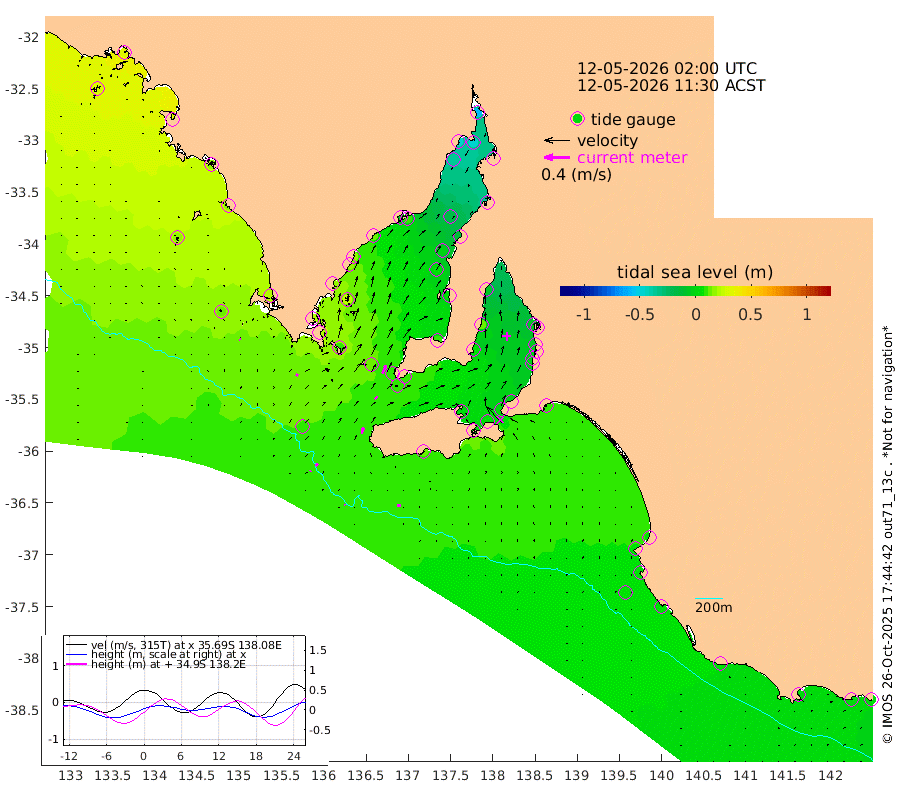 1cm/s 124T +10cm/s rms + 5cm/s 114T. SAM1DS 520m 4cm/s 26T +13cm/s rms + 5cm/s -36T. SAM2CP 100m 5cm/s 41T +21cm/s rms + 18cm/s 142T. SAM3MS 168m 5cm/s 90T +22cm/s rms + 0cm/s -30T. SAM4CY 117m 1cm/s -46T +23cm/s rms + 2cm/s 99T. SAM5CB 94m 6cm/s 47T +8cm/s rms + 3cm/s -172T. SAM6IS 83m 2cm/s 45T +11cm/s rms + 7cm/s 150T. SAM7DS 519m 13cm/s 27T +10cm/s rms + 2cm/s 87T. SAM8SG 47m 9cm/s 15T +20cm/s rms + 12cm/s -168T. NRSKAI 101m 2cm Warrnambool 3cm Port Fairy 3cm Portland 5cm Port Macdonnell 6cm Beachport 5cm Cape Rabelais (off) 6cm Robe 6cm Cape Jaffa 7cm Kingston 10cm Victor Harbor 12cm Vivonne Bay 3cm Kingscote 3cm American River 6cm Penneshaw 2cm Cape Jervis -3cm Second Valley -1cm Port Noarlunga -1cm Port Stanvac -3cm Brighton -4cm Glenelg -4cm Port Adelaide (Outer Harbor) -19cm Angus Inlet (Garden Island) -4cm Ardrossan 14cm Port Vincent 4cm Port Giles 11cm Stenhouse Bay 9cm Althorpe Island 8cm Pondalowie Bay 8cm Point Turton 5cm Port Victoria 5cm Cape Elizabeth 0cm Tiparra Reef Light -13cm Wallaroo -15cm Middle Bank -34cm Port Broughton -55cm Port Pirie -59cm Red Cliff Point (Beacon 5) -48cm Port Bonython -46cm Whyalla -36cm Western Shoal Beacon -6cm Franklin Harbor 8cm Franklin Harbor Entrance Beacon 14cm Arno Bay 17cm Port Neill 17cm Cape Hardy 19cm Tumby Bay 23cm Reevesby Island 21cm Port Lincoln 19cm Taylors Landing 10cm Whalers Bay 13cm Wedge Island Mooring 10cm Shelf Edge Mooring 19cm Coffin Bay Entrance Beacon 14cm Greenly Island 18cm Elliston 17cm Pearson Island 16cm Venus Bay 32cm Blanche Port (Streaky Bay) 32cm Thevenard 28cm St Francis Island