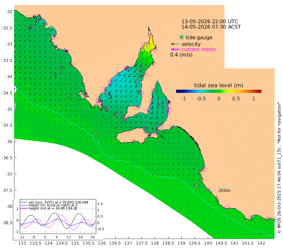 0cm/s 80T +10cm/s rms + 5cm/s 114T. SAM1DS 520m 3cm/s 59T +13cm/s rms + 5cm/s -36T. SAM2CP 100m 1cm/s -179T +21cm/s rms + 18cm/s 142T. SAM3MS 168m 3cm/s 77T +22cm/s rms + 0cm/s -30T. SAM4CY 117m 4cm/s 20T +23cm/s rms + 2cm/s 99T. SAM5CB 94m 7cm/s -124T +8cm/s rms + 3cm/s -172T. SAM6IS 83m 1cm/s -71T +11cm/s rms + 7cm/s 150T. SAM7DS 519m 2cm/s -172T +10cm/s rms + 2cm/s 87T. SAM8SG 47m 3cm/s -167T +20cm/s rms + 12cm/s -168T. NRSKAI 101m 1cm Warrnambool 1cm Port Fairy 1cm Portland -2cm Port Macdonnell 1cm Beachport 0cm Cape Rabelais (off) -2cm Robe -7cm Cape Jaffa -6cm Kingston -6cm Victor Harbor 2cm Vivonne Bay -26cm Kingscote -20cm American River -22cm Penneshaw -18cm Cape Jervis -23cm Second Valley -31cm Port Noarlunga -33cm Port Stanvac -34cm Brighton -35cm Glenelg -36cm Port Adelaide (Outer Harbor) -14cm Angus Inlet (Garden Island) -44cm Ardrossan -52cm Port Vincent -40cm Port Giles -16cm Stenhouse Bay -18cm Althorpe Island -14cm Pondalowie Bay -29cm Point Turton -31cm Port Victoria -33cm Cape Elizabeth -23cm Tiparra Reef Light -13cm Wallaroo -12cm Middle Bank 5cm Port Broughton 41cm Port Pirie 39cm Red Cliff Point (Beacon 5) 38cm Port Bonython 26cm Whyalla 15cm Western Shoal Beacon -28cm Franklin Harbor -37cm Franklin Harbor Entrance Beacon -35cm Arno Bay -40cm Port Neill -36cm Cape Hardy -35cm Tumby Bay -28cm Reevesby Island -27cm Port Lincoln -16cm Taylors Landing -26cm Whalers Bay -16cm Wedge Island Mooring -1cm Shelf Edge Mooring -11cm Coffin Bay Entrance Beacon -4cm Greenly Island -12cm Elliston -2cm Pearson Island -14cm Venus Bay -24cm Blanche Port (Streaky Bay) -21cm Thevenard -9cm St Francis Island