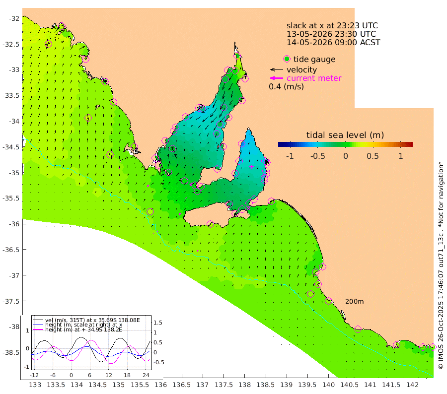 1cm/s 108T +10cm/s rms + 5cm/s 114T. SAM1DS 520m 7cm/s 48T +13cm/s rms + 5cm/s -36T. SAM2CP 100m 2cm/s 79T +21cm/s rms + 18cm/s 142T. SAM3MS 168m 3cm/s 62T +22cm/s rms + 0cm/s -30T. SAM4CY 117m 6cm/s 2T +23cm/s rms + 2cm/s 99T. SAM5CB 94m 1cm/s -21T +8cm/s rms + 3cm/s -172T. SAM6IS 83m 1cm/s 12T +11cm/s rms + 7cm/s 150T. SAM7DS 519m 9cm/s 37T +10cm/s rms + 2cm/s 87T. SAM8SG 47m 7cm/s 16T +20cm/s rms + 12cm/s -168T. NRSKAI 101m 15cm Warrnambool 14cm Port Fairy 16cm Portland 14cm Port Macdonnell 18cm Beachport 18cm Cape Rabelais (off) 16cm Robe 13cm Cape Jaffa 14cm Kingston 14cm Victor Harbor 22cm Vivonne Bay -27cm Kingscote -20cm American River -16cm Penneshaw -19cm Cape Jervis -32cm Second Valley -45cm Port Noarlunga -47cm Port Stanvac -49cm Brighton -51cm Glenelg -57cm Port Adelaide (Outer Harbor) -47cm Angus Inlet (Garden Island) -70cm Ardrossan -56cm Port Vincent -48cm Port Giles 0cm Stenhouse Bay 0cm Althorpe Island 3cm Pondalowie Bay -17cm Point Turton -20cm Port Victoria -24cm Cape Elizabeth -18cm Tiparra Reef Light -19cm Wallaroo -22cm Middle Bank -2cm Port Broughton 6cm Port Pirie -3cm Red Cliff Point (Beacon 5) 4cm Port Bonython -8cm Whyalla -12cm Western Shoal Beacon -34cm Franklin Harbor -30cm Franklin Harbor Entrance Beacon -21cm Arno Bay -20cm Port Neill -16cm Cape Hardy -12cm Tumby Bay -5cm Reevesby Island -1cm Port Lincoln 9cm Taylors Landing -10cm Whalers Bay 5cm Wedge Island Mooring 19cm Shelf Edge Mooring 18cm Coffin Bay Entrance Beacon 20cm Greenly Island 19cm Elliston 27cm Pearson Island 10cm Venus Bay 21cm Blanche Port (Streaky Bay) 24cm Thevenard 28cm St Francis Island